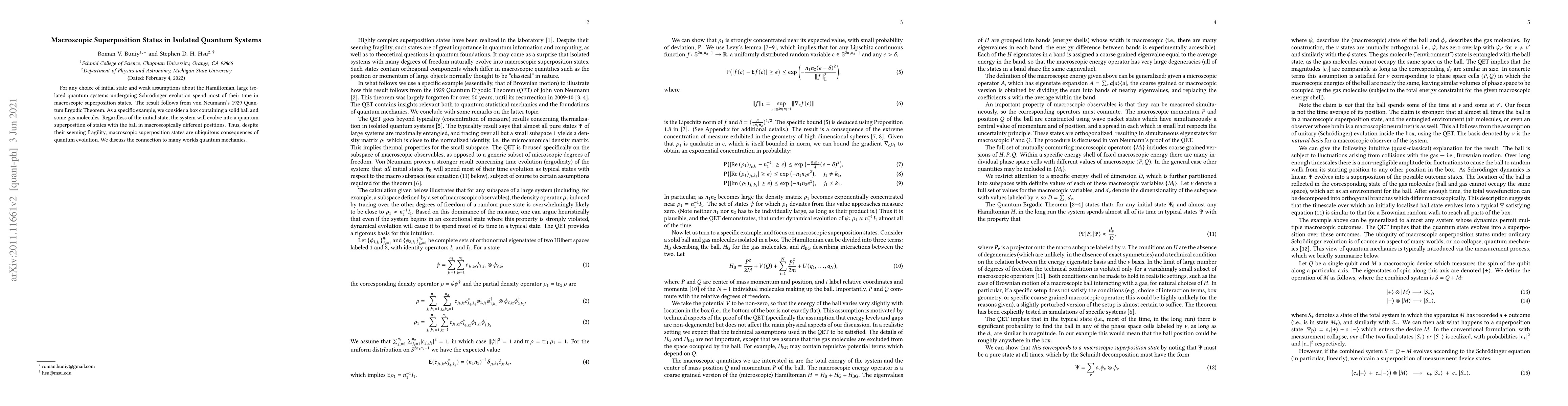 This paper demonstrates that large isolated quantum systems, governed by Schrödinger evolution, predominantly exist in macroscopic superposition states, as per von Neumann's Quantum Ergodic Theorem. An example given is a box with a solid ball and gas, which will evolve into a superposition of states with the ball in different positions, highlighting the prevalence of such superpositions in quantum mechanics.