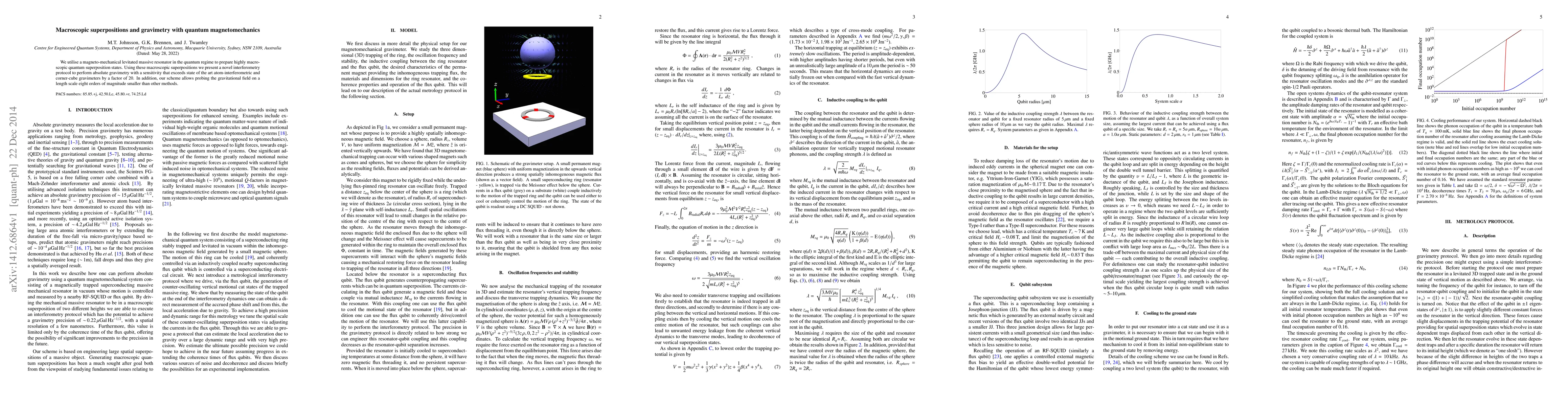 This paper demonstrates the use of a quantum magneto-mechanical resonator to create macroscopic quantum superposition states, enabling a novel interferometry protocol for gravimetry that surpasses current state-of-the-art methods by a factor of 20 and probes gravitational fields on a much smaller length scale.