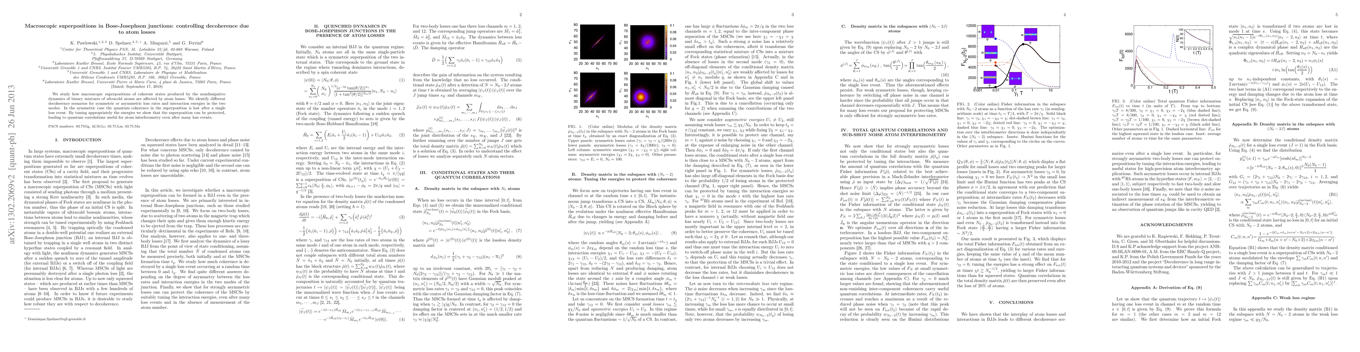 This paper investigates macroscopic superpositions in Bose-Josephson junctions, focusing on how atom losses affect quantum coherence. It finds that symmetric atom loss rates lead to rapid decoherence, but by adjusting interaction energies, the superposition can be protected, maintaining quantum correlations useful for atom interferometry.