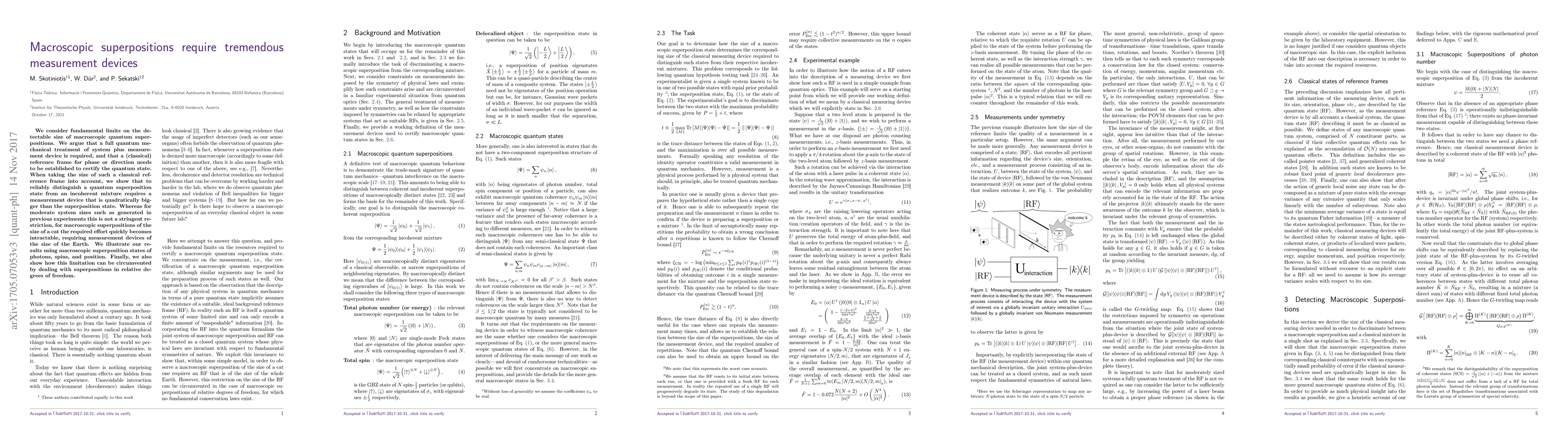 This paper argues that detecting macroscopic quantum superpositions necessitates measurement devices that grow quadratically larger than the superposition itself, making it practically impossible for states as large as a cat, due to the immense size of required reference frames. The authors suggest that superpositions in relative degrees of freedom may offer a feasible alternative.