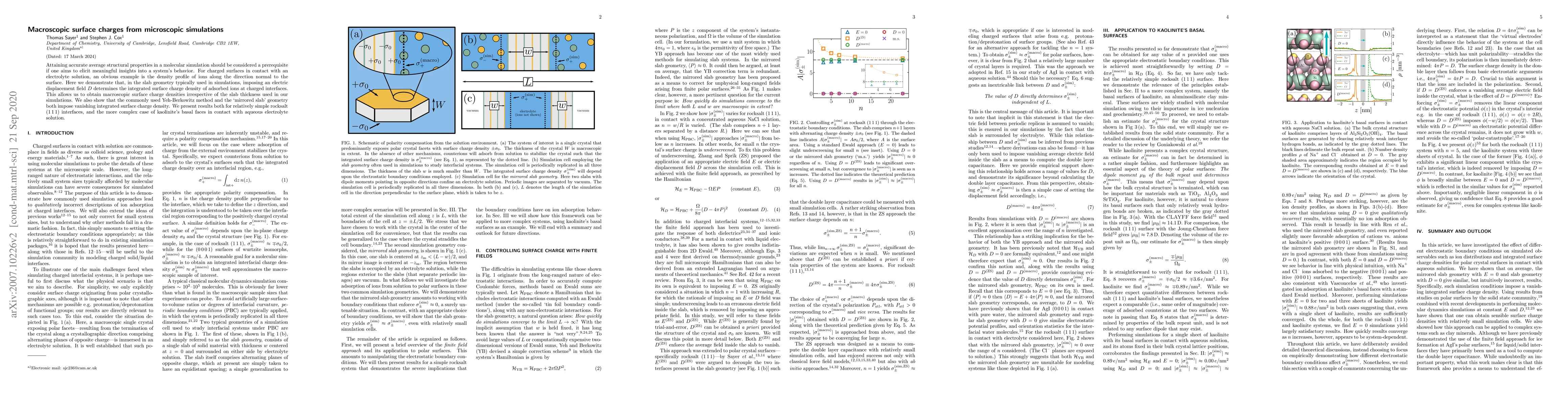 Researchers show that imposing an electric displacement field in molecular simulations can determine macroscopic surface charge densities of adsorbed ions at charged interfaces, allowing for accurate calculations regardless of slab thickness.