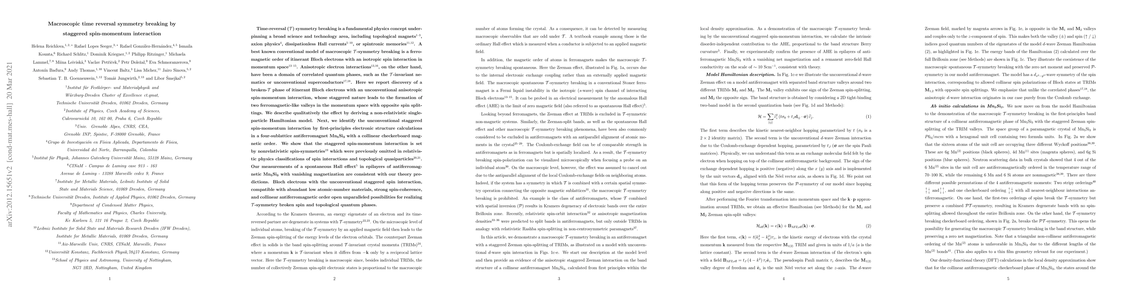 This paper reports the discovery of a macroscopic time-reversal symmetry breaking phase in itinerant Bloch electrons driven by an unconventional staggered spin-momentum interaction, demonstrated in the material Mn5Si3. The findings suggest new pathways for realizing topological spin and quantum phases in antiferromagnetic systems.