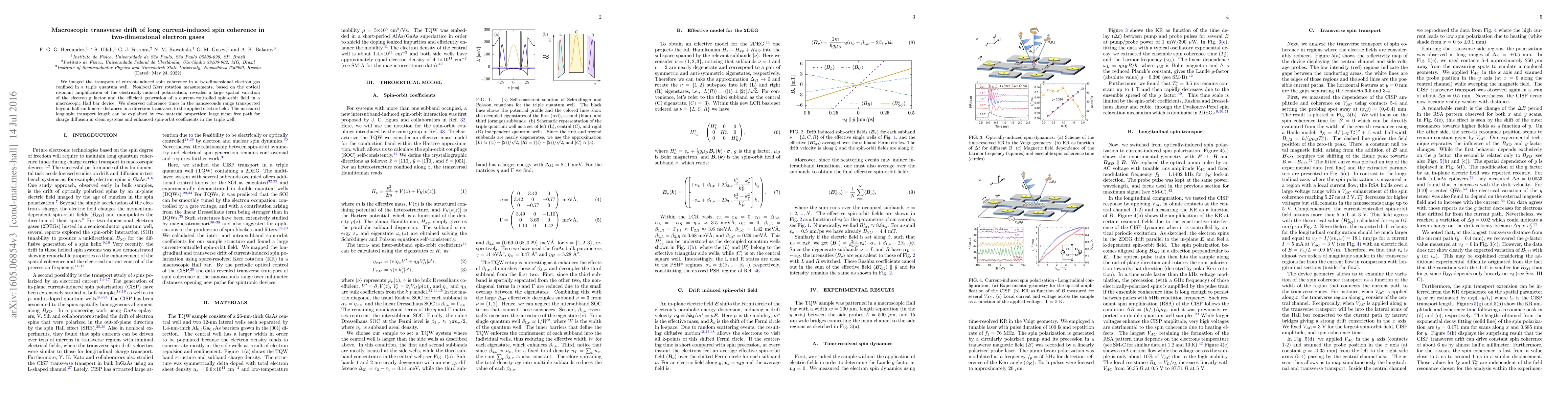 This study investigates the macroscopic transverse drift of long current-induced spin coherence in two-dimensional electron gases using a triple quantum well. Nonlocal Kerr rotation measurements revealed efficient spin-orbit field generation and coherence times in the nanosecond range, transported over half-millimeter distances, explained by large mean free paths and enhanced spin-orbit coefficients.