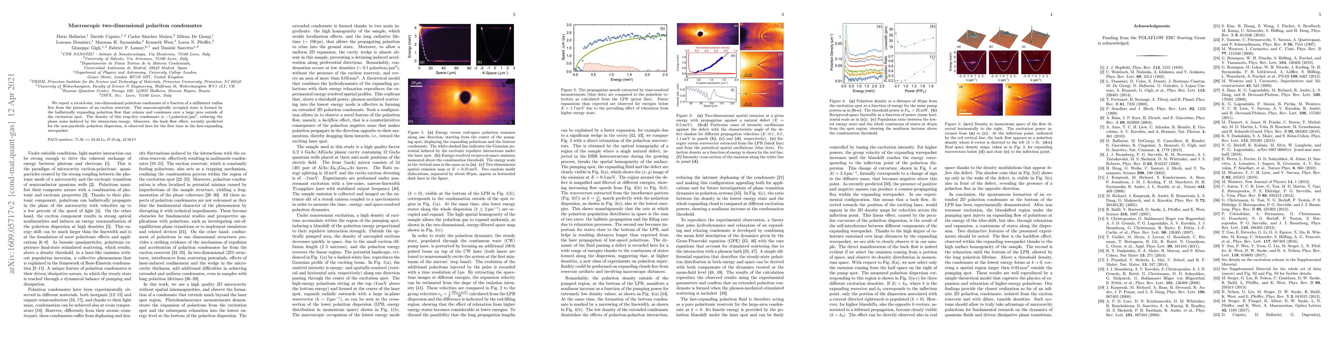 This paper reports the creation of a record-size, two-dimensional polariton condensate free from an exciton reservoir, demonstrating a macroscopically occupied state with reduced phase noise. The observed backflow effect in the expanding wave packet supports recent theoretical predictions for nonparabolic polariton dispersion.