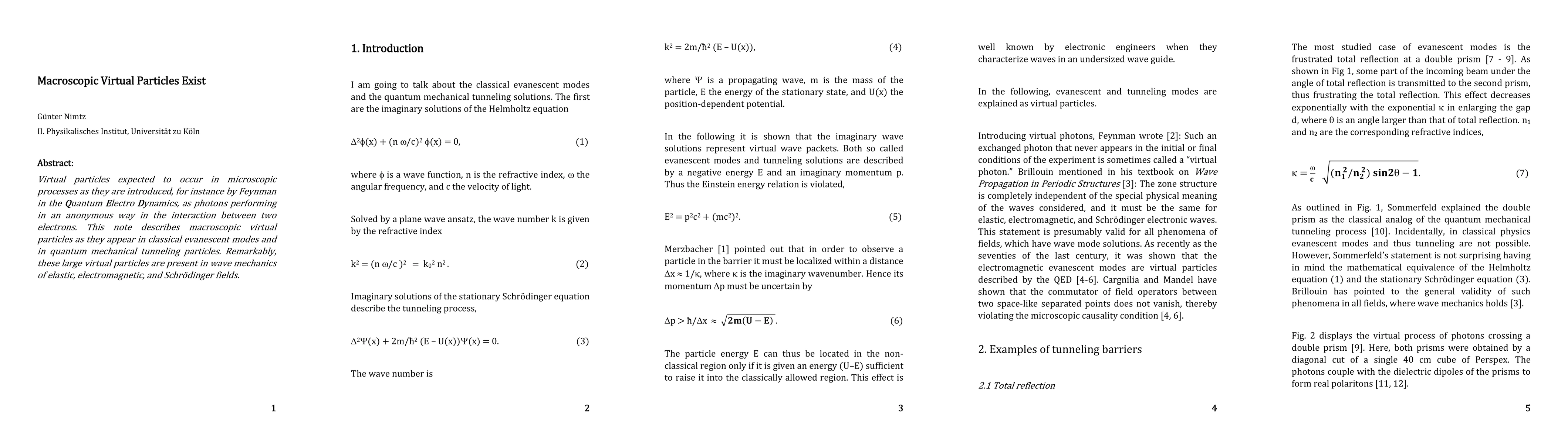 This paper explores the existence of macroscopic virtual particles in classical evanescent modes and quantum mechanical phenomena, demonstrating their presence in wave mechanics across elastic, electromagnetic, and Schrödinger fields. It extends the concept of virtual particles beyond microscopic interactions to macroscopic scales.
