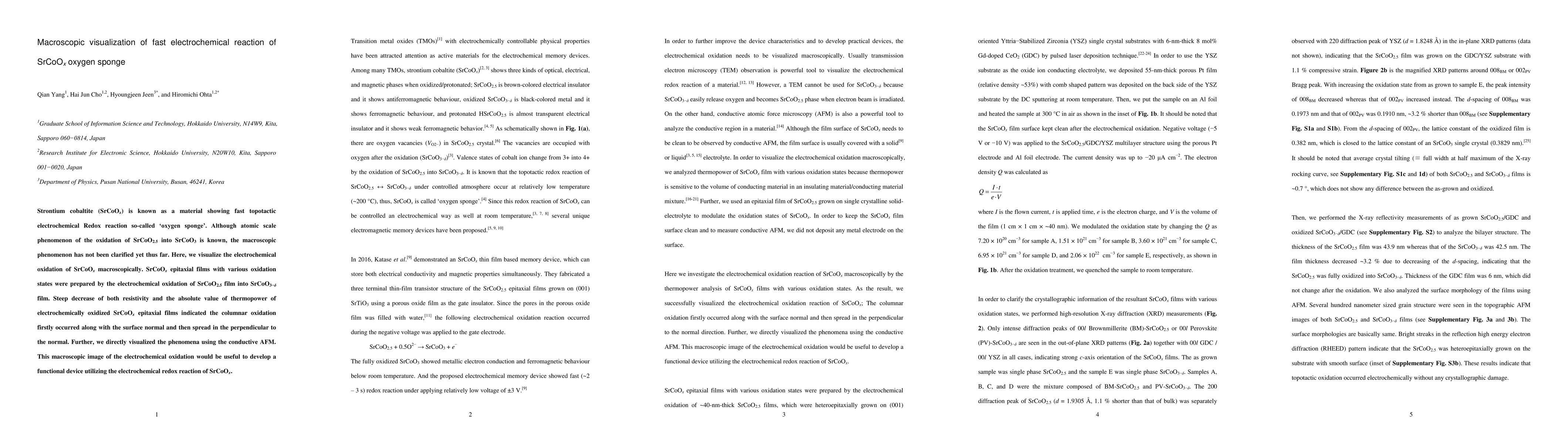 This paper visualizes the macroscopic electrochemical oxidation of SrCoOx oxygen sponge, demonstrating the columnar oxidation process using conductive AFM. The study provides insights into the material's redox behavior, which could aid in developing functional devices based on SrCoOx.