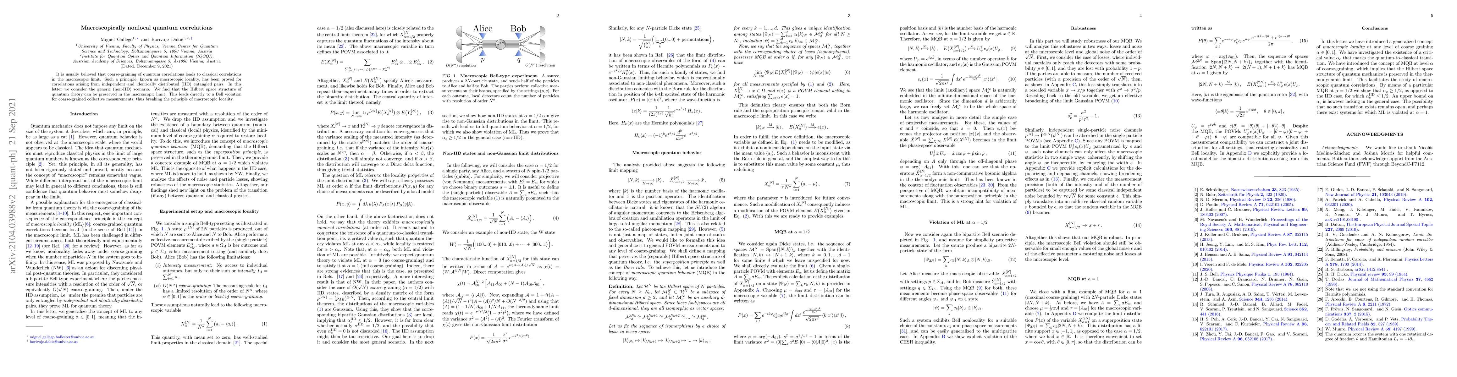 It is usually believed that coarse-graining of quantum correlations leads to classical correlations in the macroscopic limit. Such a principle, known as macroscopic locality, has been proved for correlations arising from independent and identically distributed (IID) entangled pairs. In this letter we consider the generic (non-IID) scenario. We find that the Hilbert space structure of quantum theory can be preserved in the macroscopic limit. This leads directly to a Bell violation for coarse-grained collective measurements, thus breaking the principle of macroscopic locality.