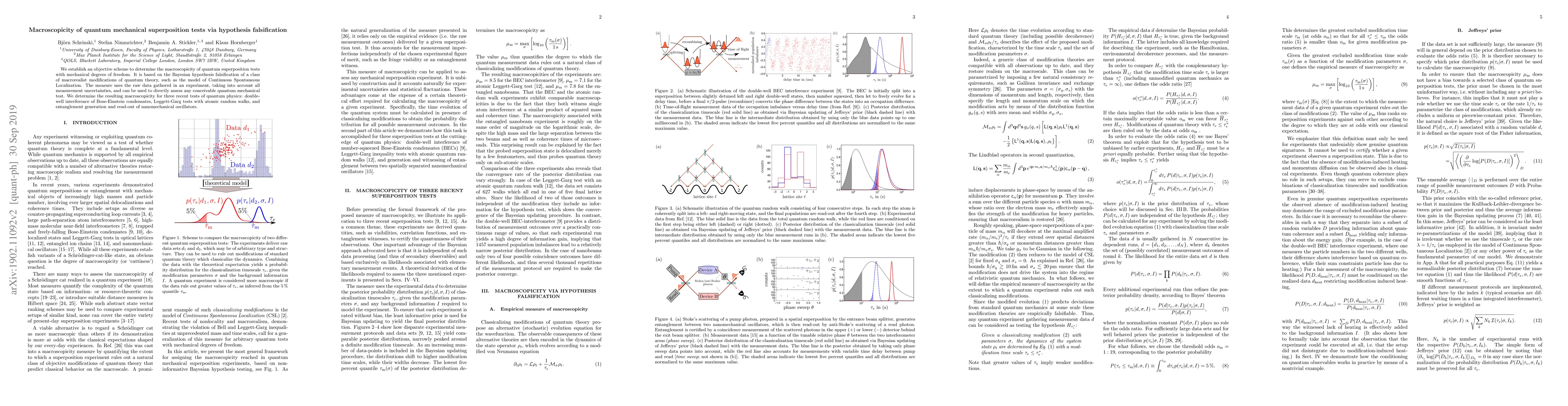 This paper proposes a Bayesian hypothesis falsification method to objectively determine the macroscopicity of quantum mechanical superposition tests, using raw experimental data and measurement uncertainties. It applies this method to assess the macroscopicity of three recent quantum tests: Bose-Einstein condensates, Leggett-Garg tests, and nanomechanical entanglement.