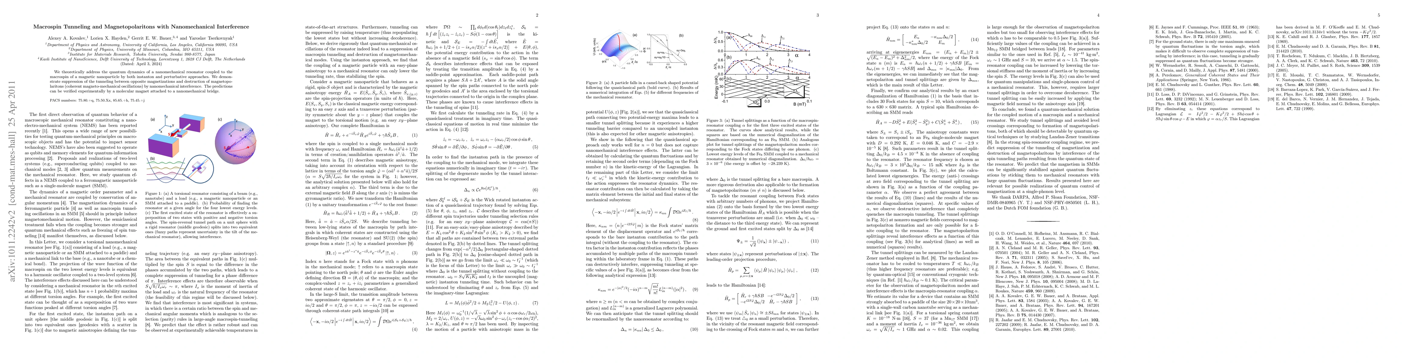 Researchers demonstrate suppression of magnetization tunneling via nanomechanical interference in a magnetic nanoparticle attached to a mechanical bridge, predicting the existence of magnetopolaritons.