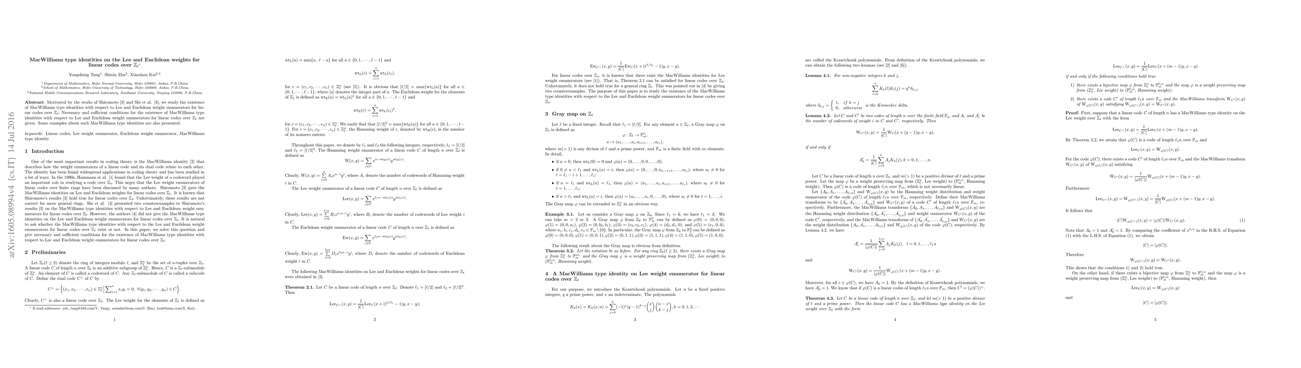This paper investigates the existence of MacWilliams type identities for linear codes over $\mathbb{Z}_{\ell}$ concerning Lee and Euclidean weights. It provides necessary and sufficient conditions for these identities and includes illustrative examples.