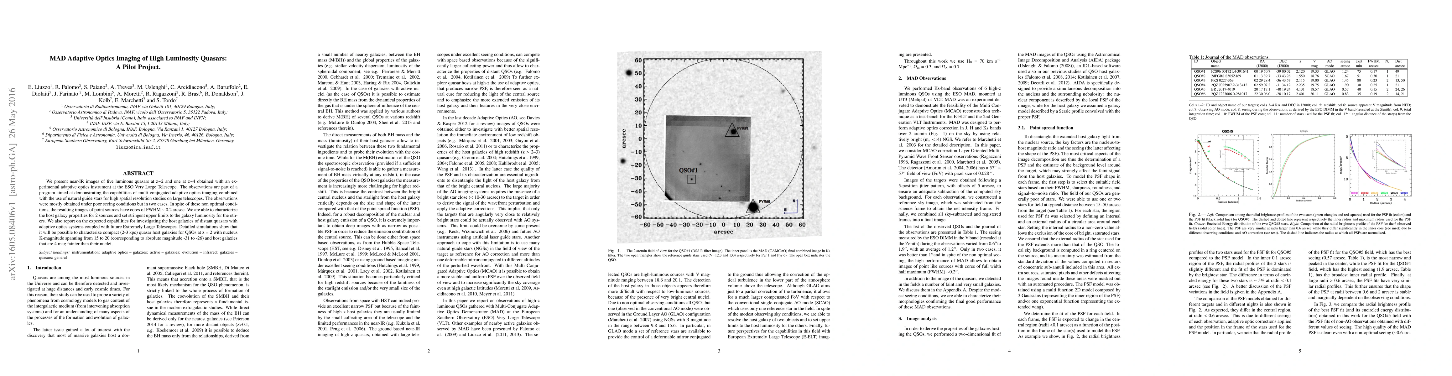 This study uses MAD adaptive optics imaging to obtain near-IR images of high luminosity quasars at redshifts z~2 and z~4, achieving spatial resolutions of ~0.2 arcsec despite poor seeing conditions. The research demonstrates the potential for future Extremely Large Telescopes to characterize quasar host galaxies.