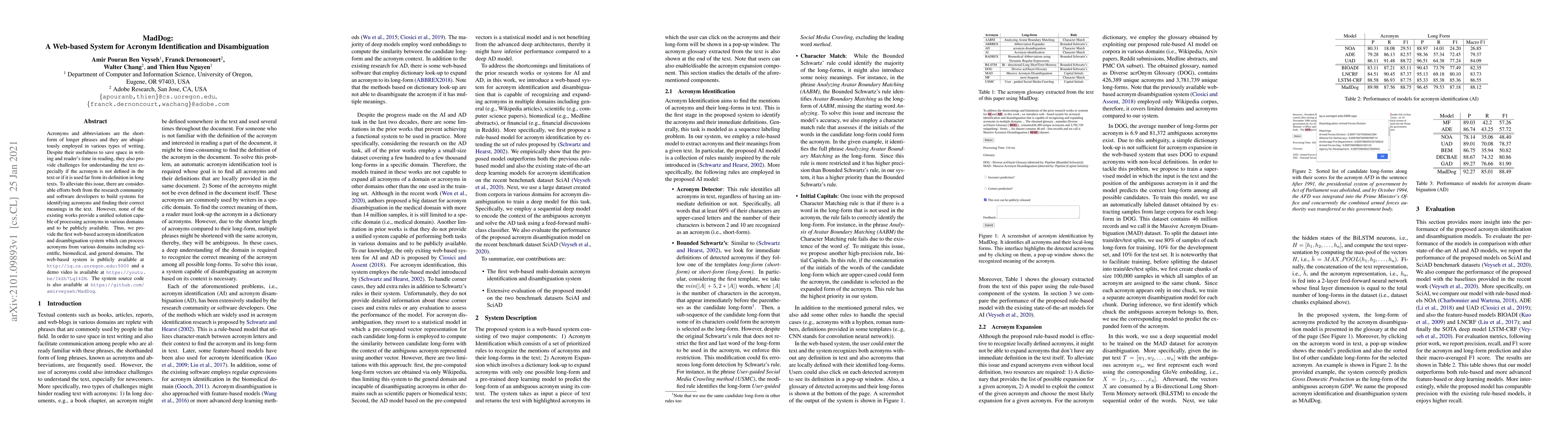 MadDog is a web-based system designed to identify and disambiguate acronyms across various domains, offering a public solution to the challenges posed by acronyms in text comprehension. It is publicly accessible and its source code is available for further development.