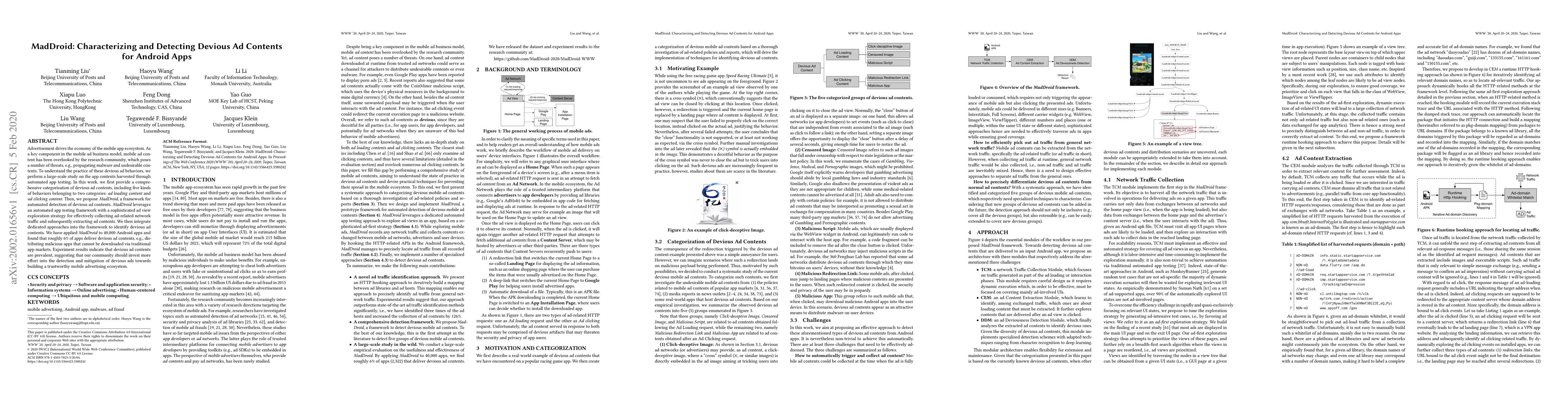 MadDroid categorizes and detects devious ad content in Android apps, identifying five types of harmful behaviors. The study reveals that 6% of 40,000 analyzed apps propagate malicious or undesirable ads, highlighting the need for enhanced detection and mitigation efforts.