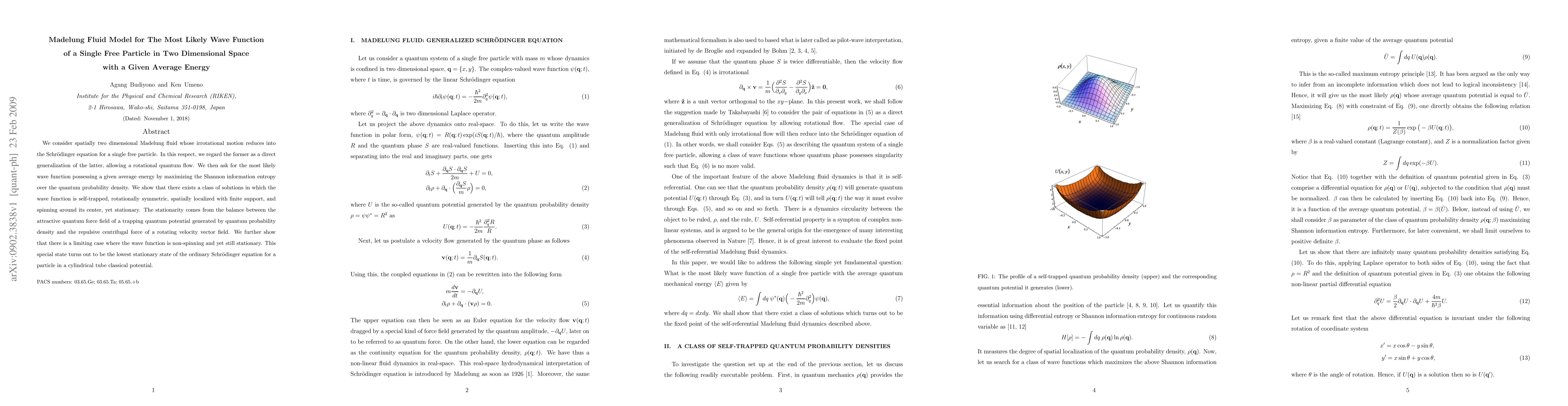 Researchers used a fluid model to find the most likely wave function for a single particle in 2D space with a given energy, discovering self-trapped, rotationally symmetric states that balance attractive and repulsive forces.