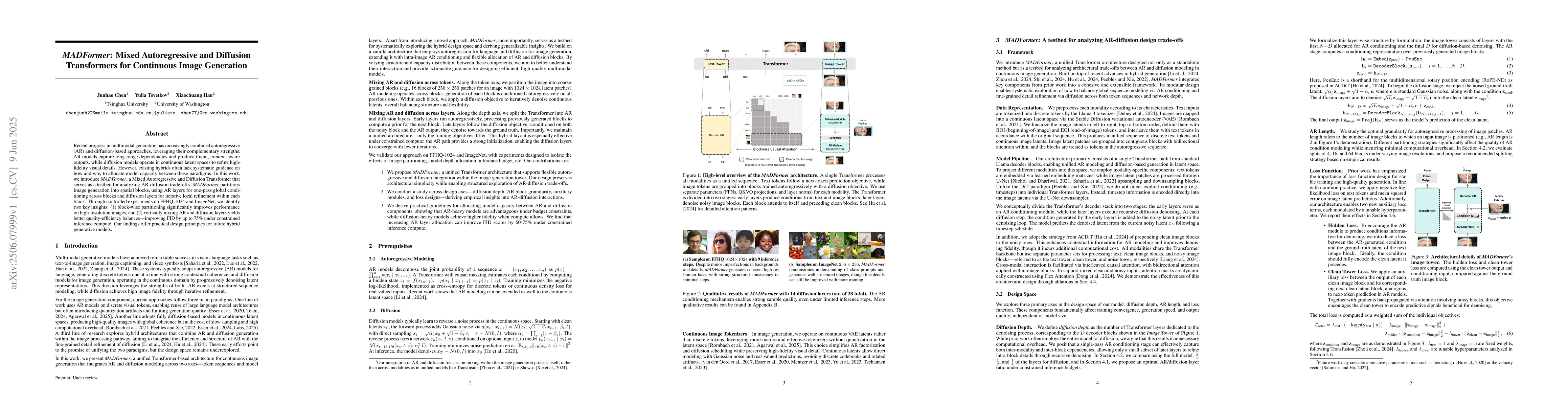 Recent progress in multimodal generation has increasingly combined autoregressive (AR) and diffusion-based approaches, leveraging their complementary strengths: AR models capture long-range dependencies and produce fluent, context-aware outputs, while diffusion models operate in continuous latent spaces to refine high-fidelity visual details. However, existing hybrids often lack systematic guidance on how and why to allocate model capacity between these paradigms. In this work, we introduce MADFormer, a Mixed Autoregressive and Diffusion Transformer that serves as a testbed for analyzing AR-diffusion trade-offs. MADFormer partitions image generation into spatial blocks, using AR layers for one-pass global conditioning across blocks and diffusion layers for iterative local refinement within each block. Through controlled experiments on FFHQ-1024 and ImageNet, we identify two key insights: (1) block-wise partitioning significantly improves performance on high-resolution images, and (2) vertically mixing AR and diffusion layers yields better quality-efficiency balances--improving FID by up to 75% under constrained inference compute. Our findings offer practical design principles for future hybrid generative models.