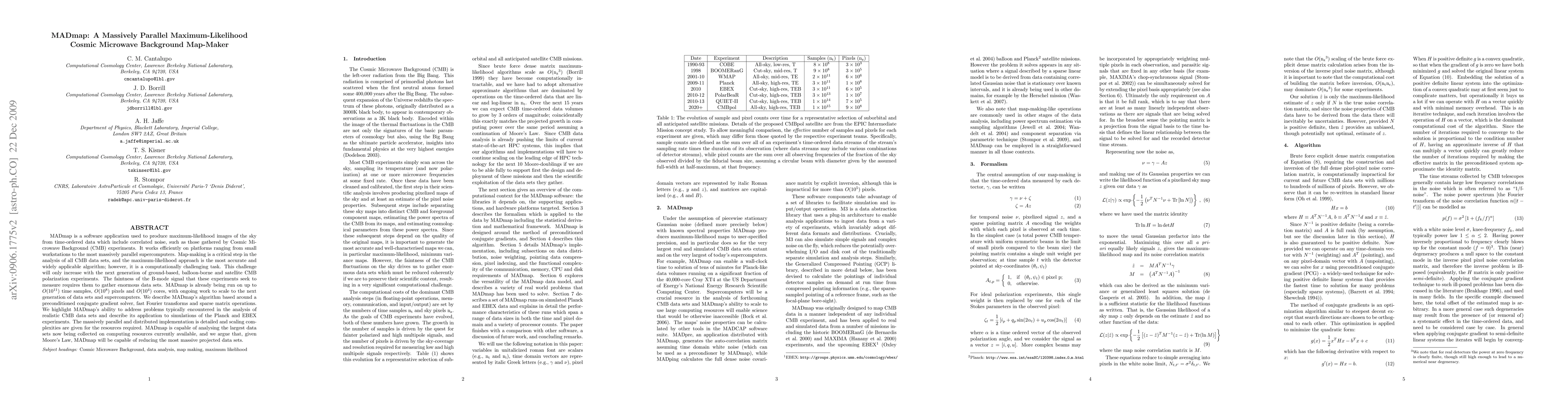 MADmap is a software tool for producing maximum-likelihood images of the Cosmic Microwave Background sky from large, noisy datasets. It efficiently scales from small workstations to supercomputers, employing a preconditioned conjugate gradient solver and leveraging parallel computing to handle the immense data volumes expected from future CMB experiments.