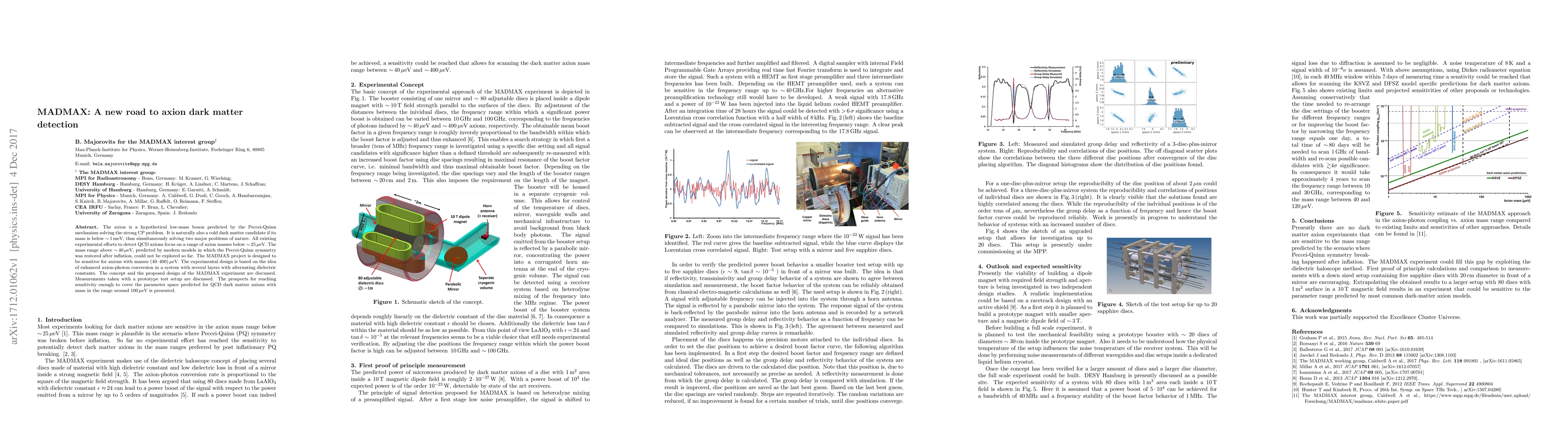 The MADMAX project introduces a novel experimental design based on enhanced axion-photon conversion in a system with multiple layers of alternating dielectric constants, enabling sensitivity to axion masses in the range of 40-400 μeV.