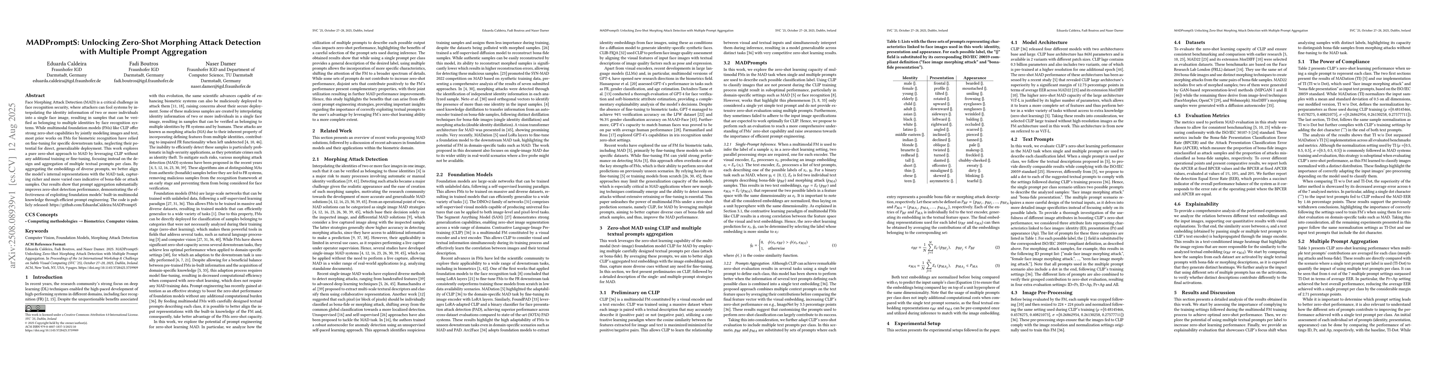 Face Morphing Attack Detection (MAD) is a critical challenge in face recognition security, where attackers can fool systems by interpolating the identity information of two or more individuals into a single face image, resulting in samples that can be verified as belonging to multiple identities by face recognition systems. While multimodal foundation models (FMs) like CLIP offer strong zero-shot capabilities by jointly modeling images and text, most prior works on FMs for biometric recognition have relied on fine-tuning for specific downstream tasks, neglecting their potential for direct, generalizable deployment. This work explores a pure zero-shot approach to MAD by leveraging CLIP without any additional training or fine-tuning, focusing instead on the design and aggregation of multiple textual prompts per class. By aggregating the embeddings of diverse prompts, we better align the model's internal representations with the MAD task, capturing richer and more varied cues indicative of bona-fide or attack samples. Our results show that prompt aggregation substantially improves zero-shot detection performance, demonstrating the effectiveness of exploiting foundation models' built-in multimodal knowledge through efficient prompt engineering.