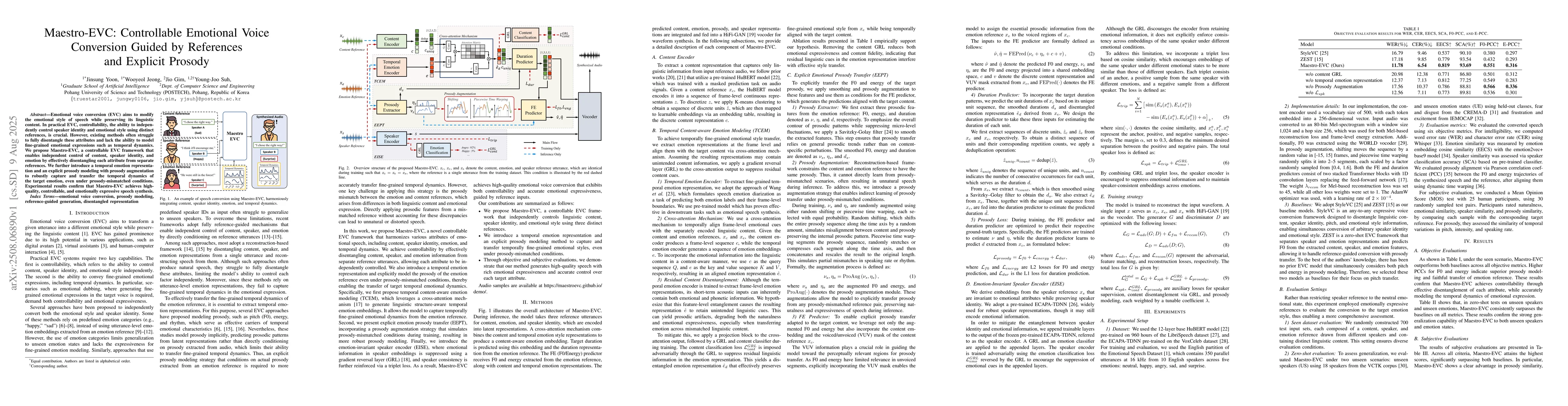 The main technical contribution of this work is the development of Maestro-EVC, a framework that effectively disentangles content, speaker identity, emotion, and temporal dynamics for controllable emotional voice conversion.