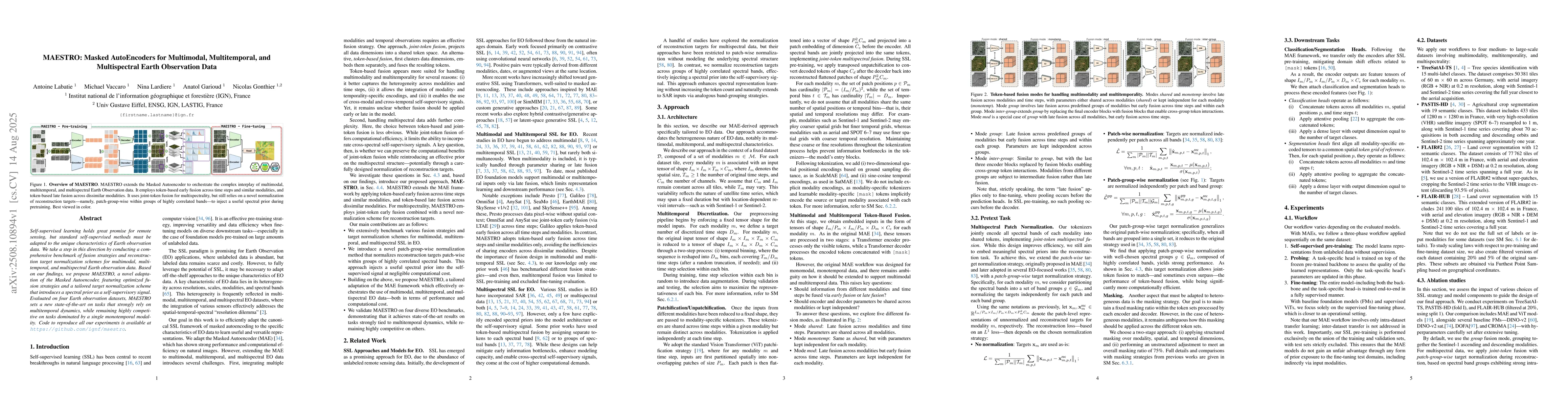 Self-supervised learning holds great promise for remote sensing, but standard self-supervised methods must be adapted to the unique characteristics of Earth observation data. We take a step in this direction by conducting a comprehensive benchmark of fusion strategies and reconstruction target normalization schemes for multimodal, multitemporal, and multispectral Earth observation data. Based on our findings, we propose MAESTRO, a novel adaptation of the Masked Autoencoder, featuring optimized fusion strategies and a tailored target normalization scheme that introduces a spectral prior as a self-supervisory signal. Evaluated on four Earth observation datasets, MAESTRO sets a new state-of-the-art on tasks that strongly rely on multitemporal dynamics, while remaining highly competitive on tasks dominated by a single mono-temporal modality. Code to reproduce all our experiments is available at https://github.com/ignf/maestro.
