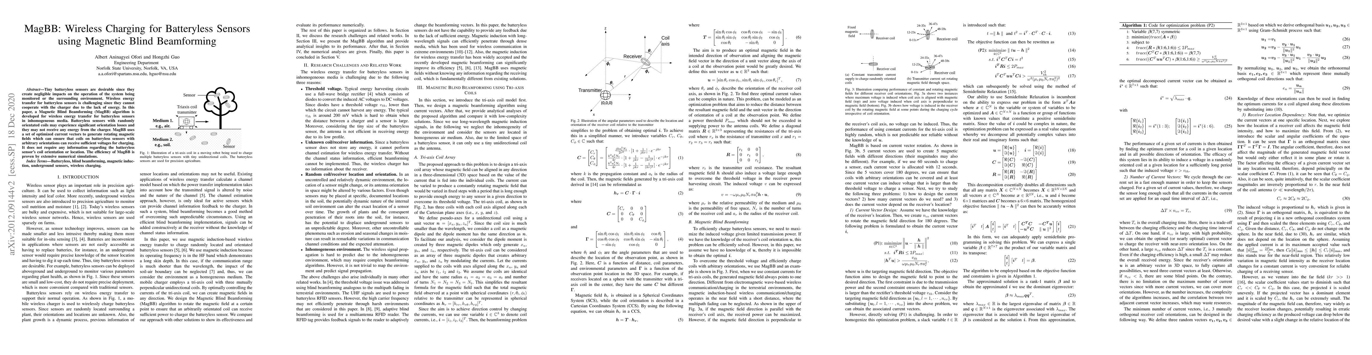 This paper introduces the Magnetic Blind Beamforming (MagBB) algorithm for wirelessly charging batteryless sensors in inhomogeneous media, addressing orientation losses. MagBB uses rotating magnetic fields generated by optimized current vectors, ensuring sufficient energy transfer without requiring knowledge of sensor coil orientation or location.