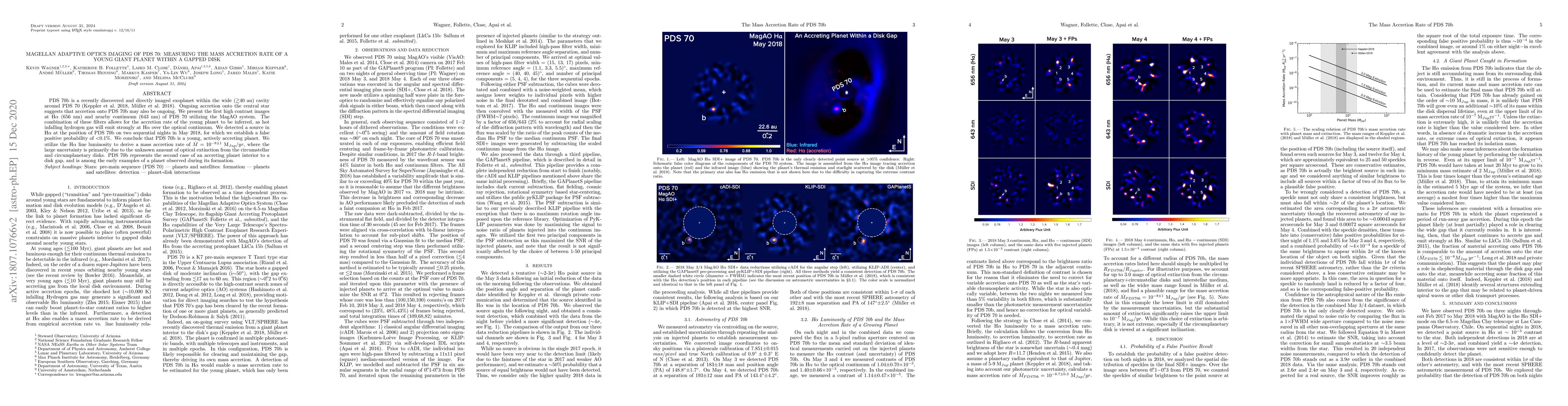 This paper reports the first high-contrast imaging of PDS 70b using MagAO, revealing ongoing accretion onto the young giant planet within a gap in its host disk. The derived mass accretion rate is $\dot M= 10^{-8\pm1}$ M$_{Jup}/yr$, indicating PDS 70b is actively accreting and forming.
