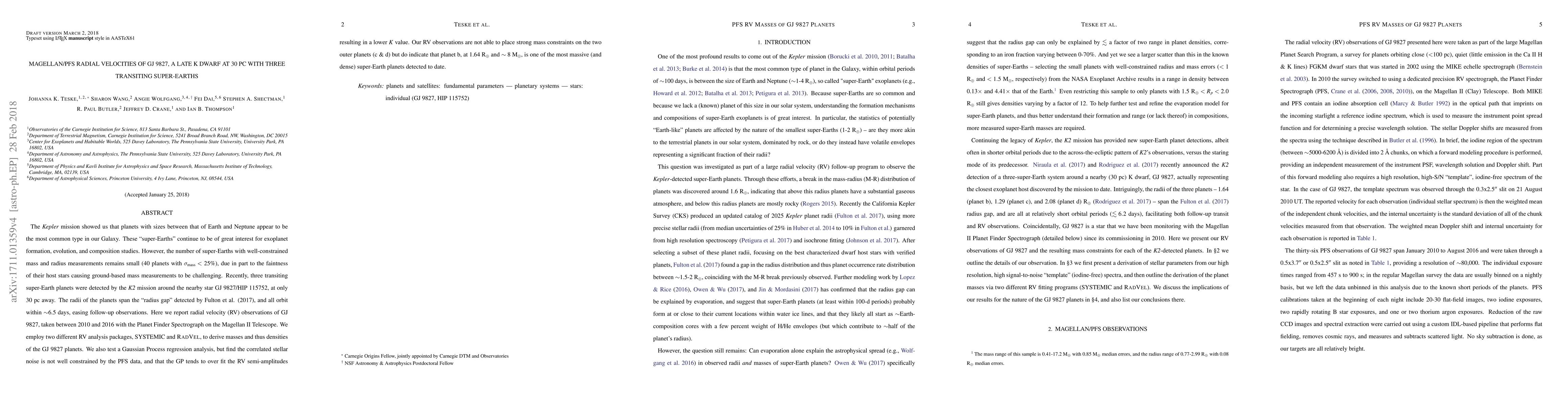 This study reports radial velocity observations of GJ 9827, revealing the mass and density of its three transiting super-Earths. Planet b, with a radius of 1.64 R$_{\oplus}$ and mass of ~8 M$_{\oplus}$, is identified as one of the most massive super-Earths, while mass constraints for the outer planets remain weak.