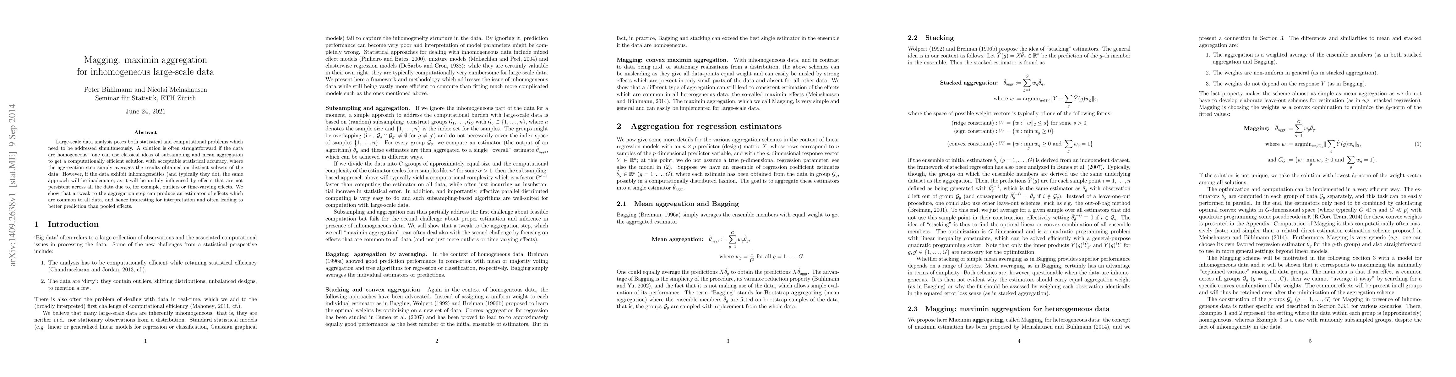 Researchers developed a method called Magging to address inhomogeneous large-scale data analysis issues. By adjusting aggregation methods, they created an estimator that captures common effects across the entire dataset.