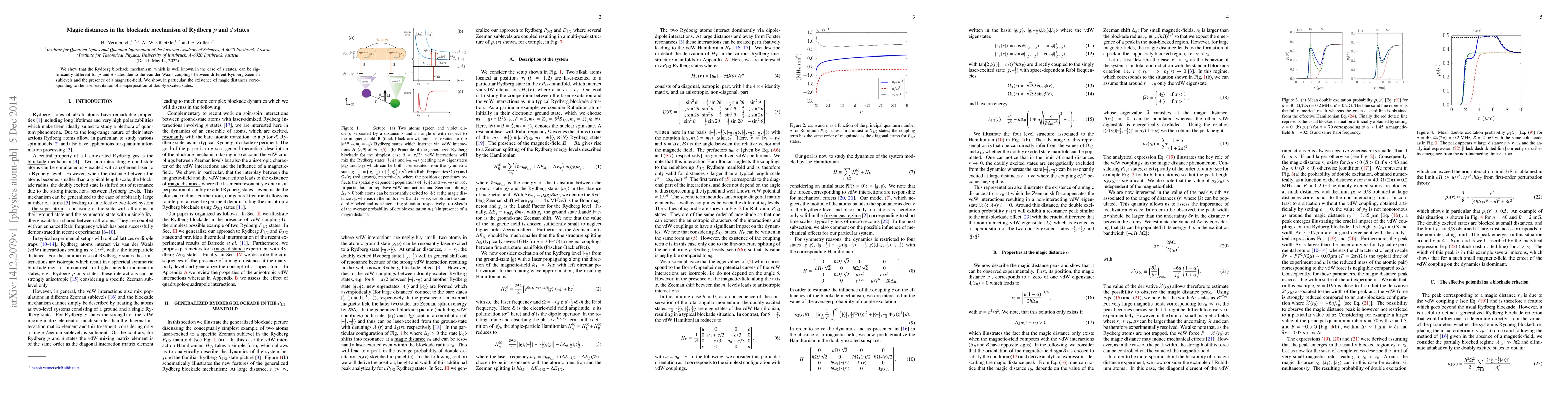 Researchers found magic distances in Rydberg p and d states due to van der Waals couplings and magnetic fields, which can affect the blockade mechanism of laser-excited doubly excited states.