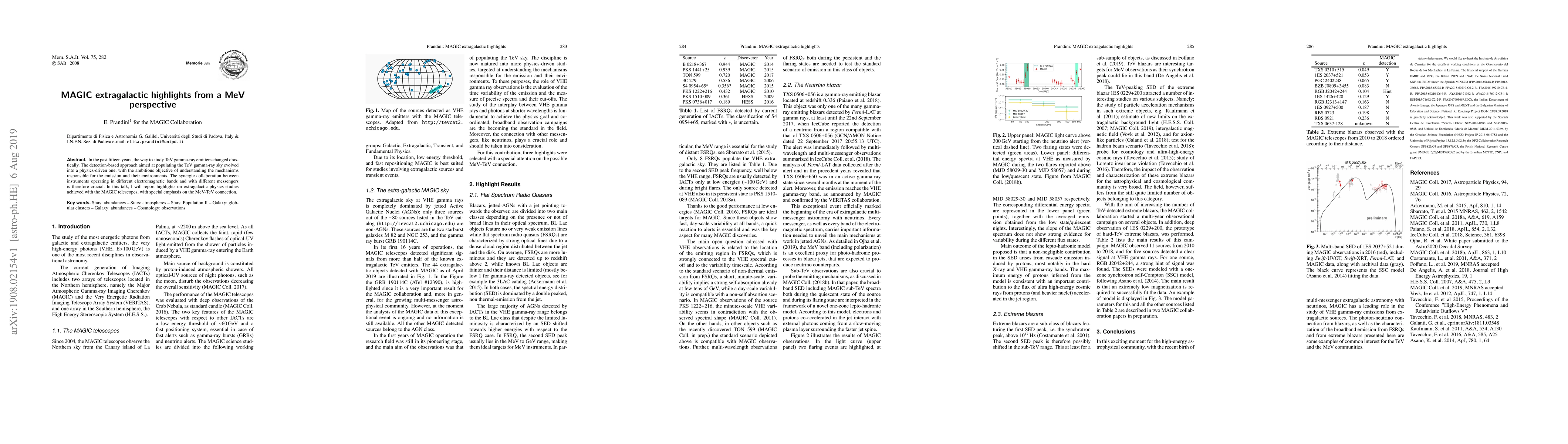In the past fifteen years, the way to study TeV gamma-ray emitters changed drastically. The detection-based approach aimed at populating the TeV gamma-ray sky evolved into a physics-driven one, with the ambitious objective of understanding the mechanisms responsible for the emission and their environments. The synergic collaboration between instruments operating in different electromagnetic bands and with different messengers is therefore crucial. In this talk, I will report highlights on extragalactic physics studies achieved with the MAGIC telescopes, with special emphasis on the MeV-TeV connection.