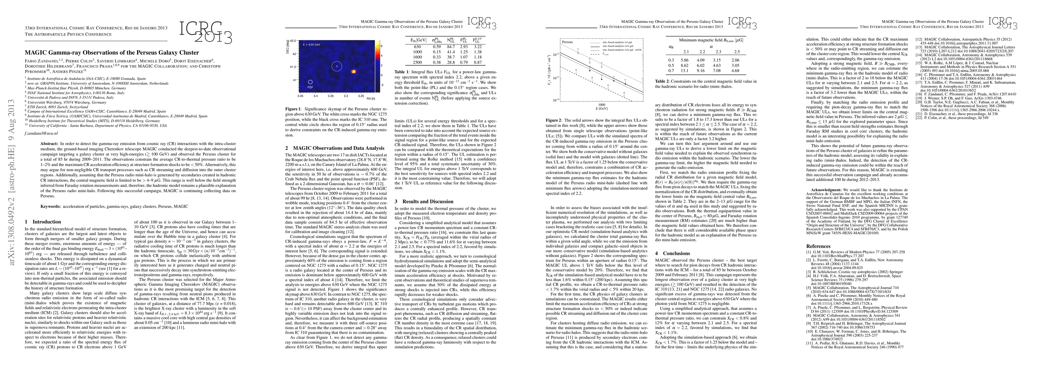 In order to detect the gamma-ray emission from cosmic ray (CR) interactions with the intra-cluster medium, the ground-based imaging Cherenkov telescope MAGIC conducted the deepest-to-date observational campaign targeting a galaxy cluster at very high-energies (> 100 GeV) and observed the Perseus cluster for a total of 85 hr during 2009-2011. The observations constrain the average CR-to-thermal pressure ratio to be 1-2% and the maximum CR acceleration efficiency at structure formation shocks to be <50%. Alternatively, this may argue for non-negligible CR transport processes such as CR streaming and diffusion into the outer cluster regions. Additionally, assuming that the Perseus radio mini-halo is generated by secondaries created in hadronic CR interactions, the central magnetic field is limited to be > 4-9 muG. This range is well below the field strength inferred from Faraday rotation measurements and, therefore, the hadronic model remains a plausible explanation of the Perseus radio mini-halo. Following this successful campaign, MAGIC is continuing collecting data on Perseus.