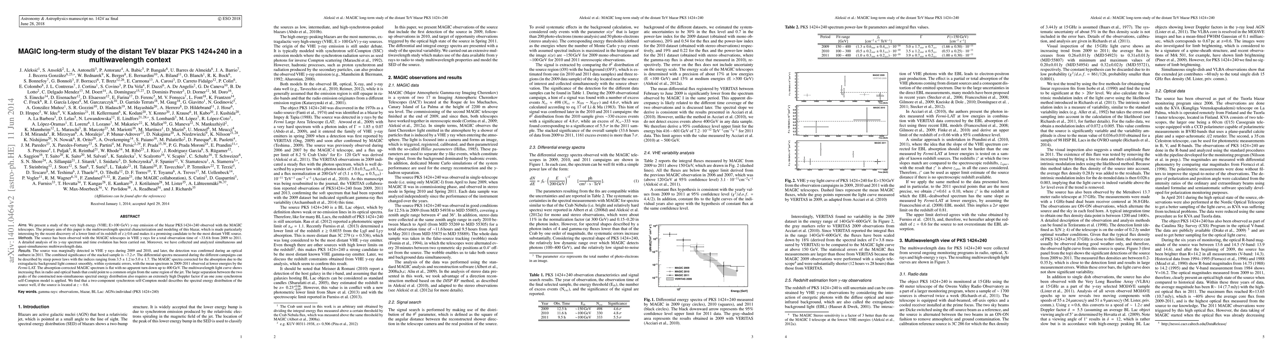 Researchers observed PKS 1424+240 with MAGIC telescopes, detecting VHE gamma-ray emission for the first time in 2009-2011, revealing a flat spectrum up to 400 GeV and increasing flux in radio and optical bands, suggesting a common origin from the same jet region.
