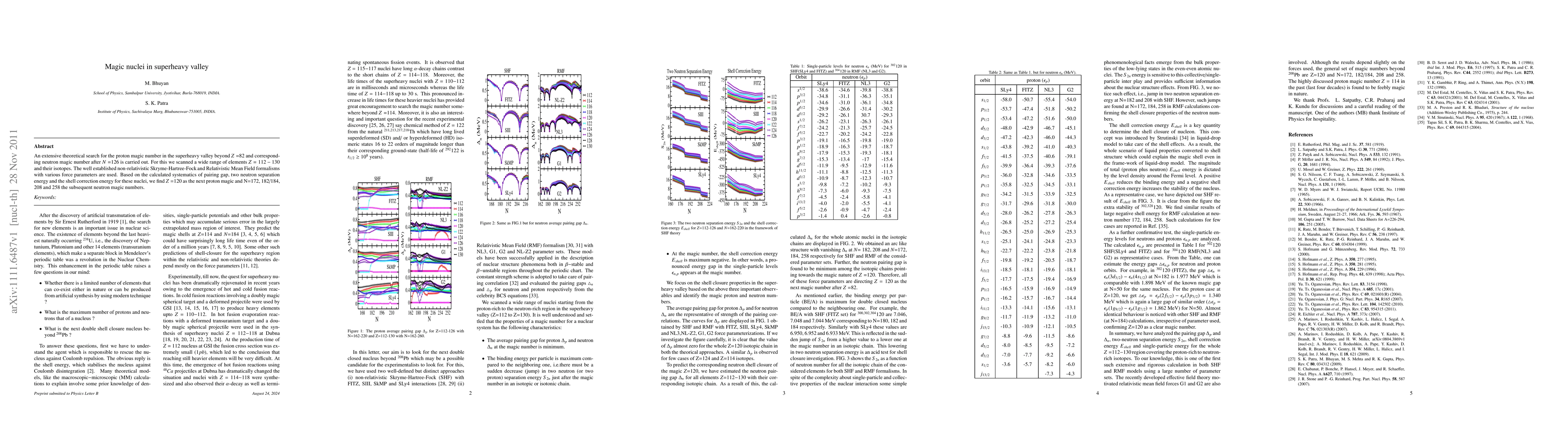 Theoretical research identifies 120 as the next proton magic number and 172, 182/184, 208, and 258 as subsequent neutron magic numbers in superheavy elements.