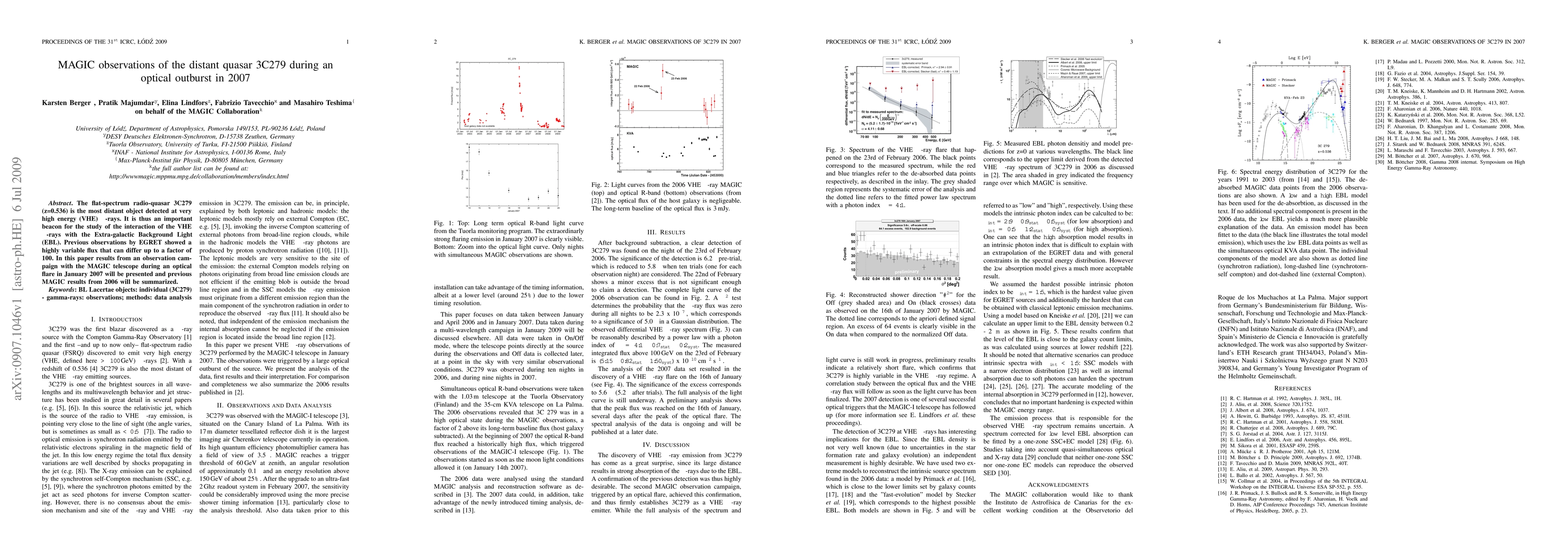 The MAGIC telescope was used for VHE (Very High Energy) gamma-ray observations of the distant quasar 3C279 during an optical outburst in January 2007. The data was collected in On/Off mode, comparing source observations with data from a similar region of the sky taken when the source was not observed.