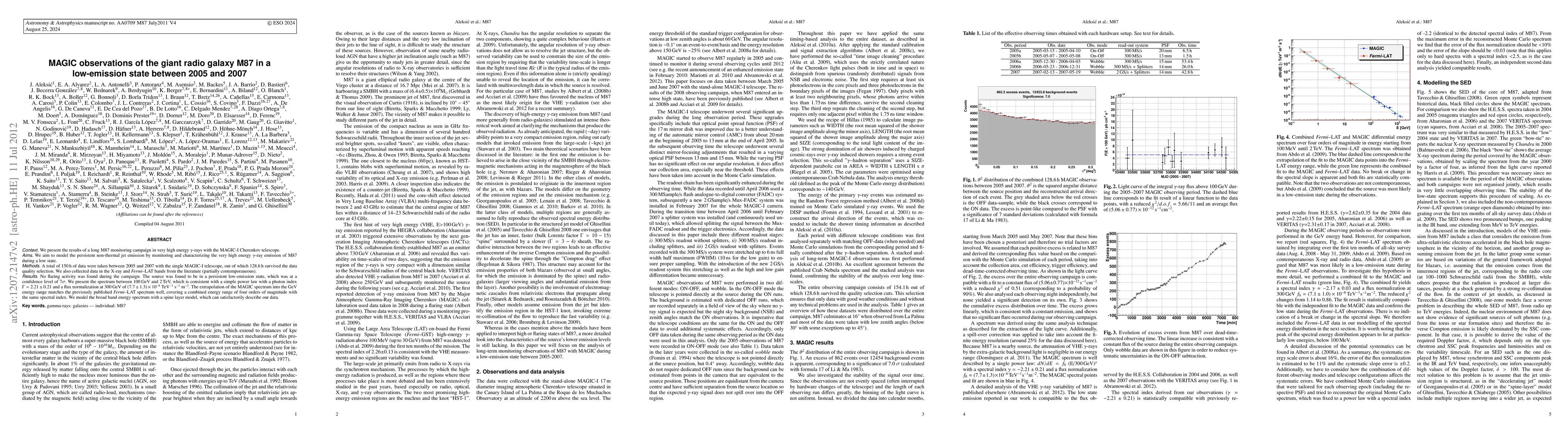 Scientists monitored M87, a giant radio galaxy, for 150 hours in 2005-2007 to study its low-emission state, finding a persistent power-law spectrum consistent with previous data and a broad band energy model that fits the observations.