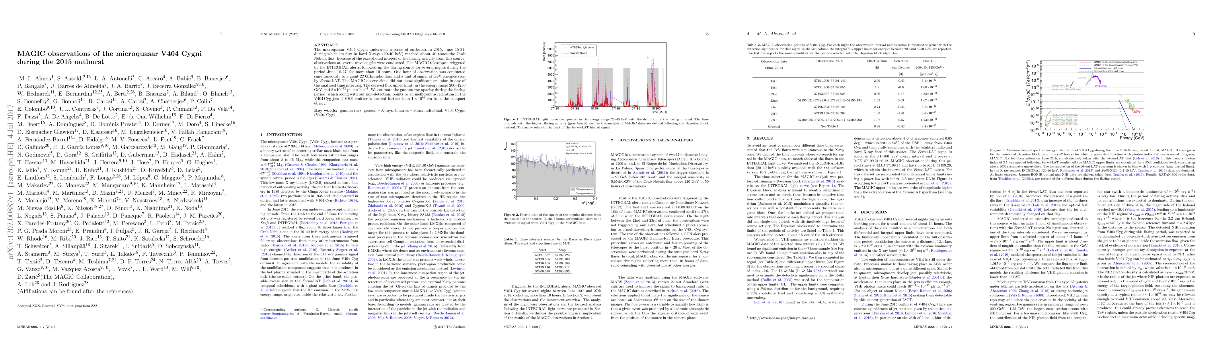The MAGIC telescope observed V404 Cygni during its 2015 outburst, but found no significant gamma-ray emission in the energy range of 200-1250 GeV, setting an upper limit on flux of $4.8 imes 10^{-12}$ ph cm$^{-2}$ s$^{-1}$. This suggests that the VHE emitter is located further than $1 imes 10^{10}$ cm from the compact object if inefficient acceleration occurs in the jets.