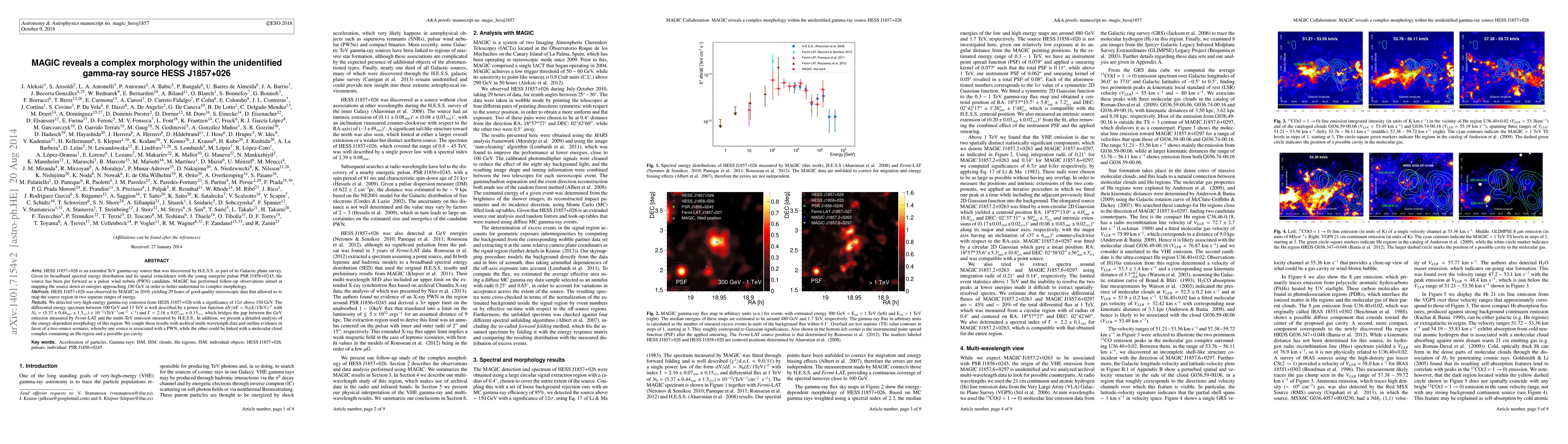 MAGIC observations reveal a complex morphology in the TeV gamma-ray source HESS J1857+026, bridging GeV and multi-TeV emissions with a power law spectrum. The study supports a two-source scenario, linking one source to a pulsar wind nebula and another to a molecular cloud complex.