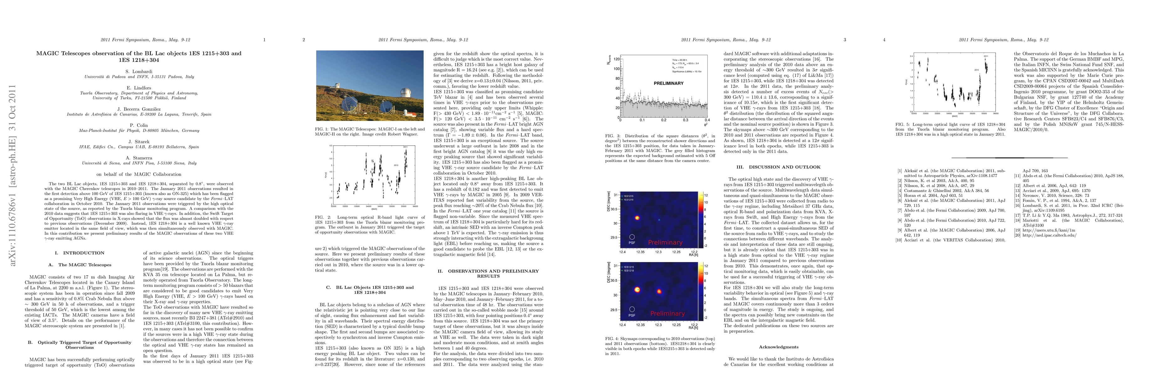 The MAGIC Cherenkov telescopes detected VHE gamma-rays (E > 100 GeV) from BL Lac objects 1ES 1215+303 and 1ES 1218+304 in 2010-2011. The observations confirmed 1ES 1215+303's VHE flaring activity, while 1ES 1218+304 was found to be a known VHE emitter. This study highlights the capabilities of MAGIC in observing VHE gamma-ray emitting Active Galactic Nuclei.