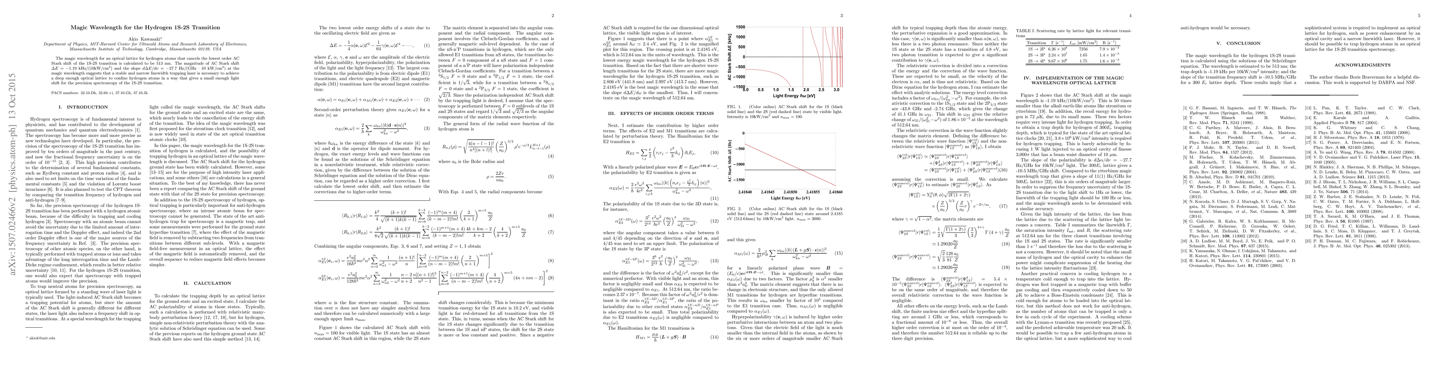 This paper calculates the magic wavelength of 513 nm for an optical lattice to cancel the lowest order AC Stark shift of the hydrogen 1S-2S transition, emphasizing the need for a stable trapping laser with a narrow linewidth to achieve a deep enough lattice for precision spectroscopy.