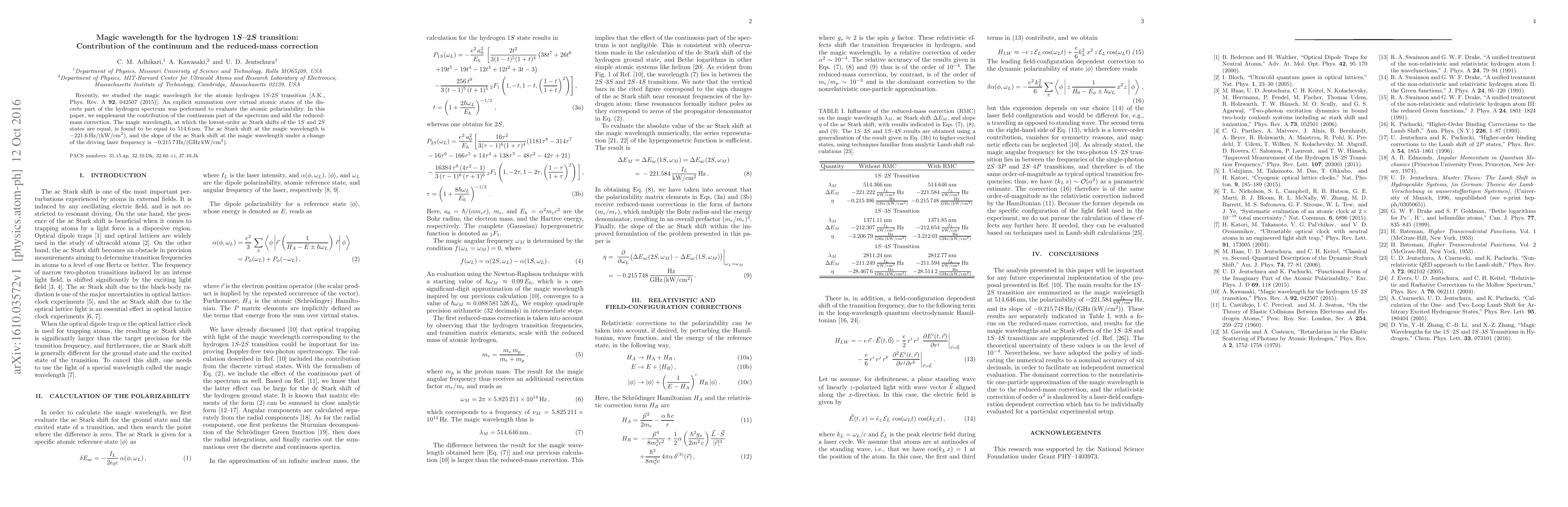 Researchers find a magic wavelength of 514.6 nm for the hydrogen 1S-2S transition, where the lowest-order ac Stark shifts of the two states are equal, and study its implications on atomic polarizability.