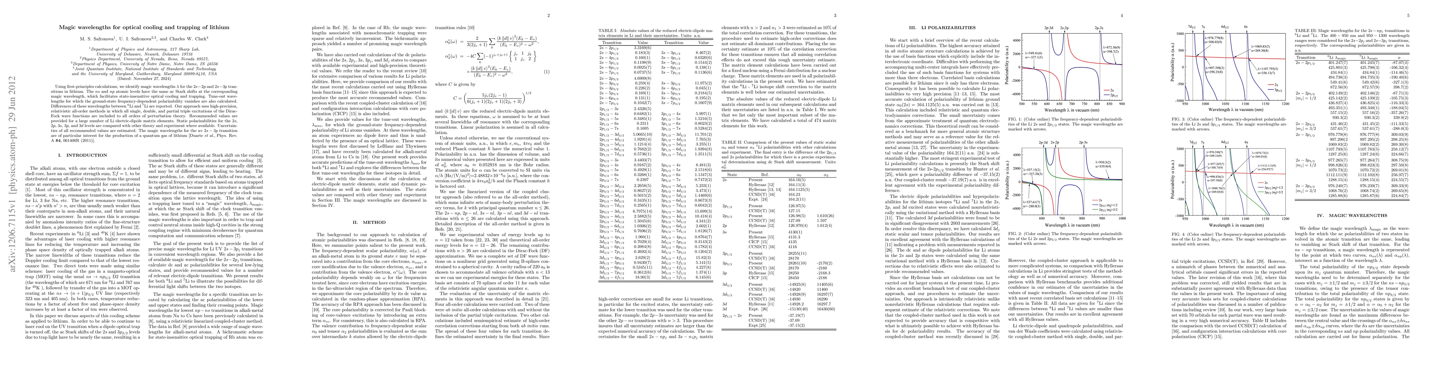 This paper identifies magic wavelengths for optical cooling and trapping of lithium using first-principles calculations, facilitating state-insensitive cooling by equalizing ac Stark shifts. It also reports tune-out wavelengths and compares theoretical results with experimental data, providing recommended values for lithium electric-dipole matrix elements.
