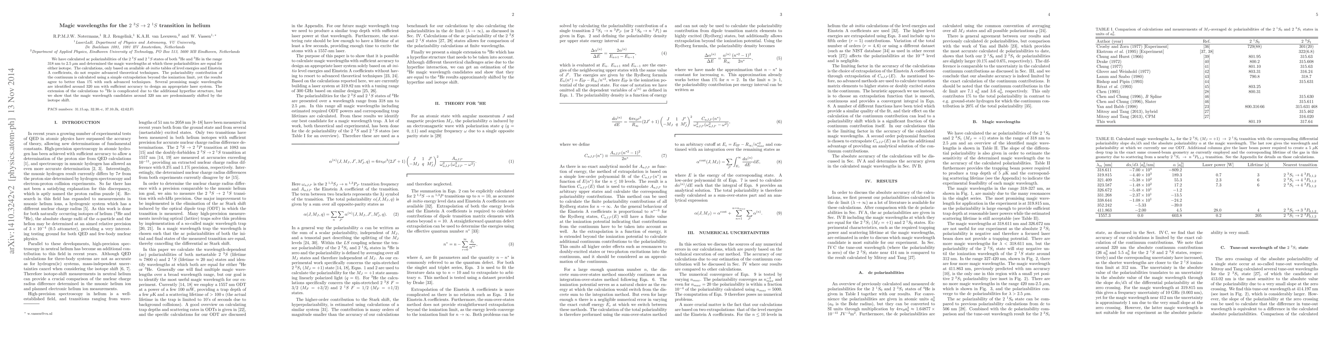 Researchers have identified magic wavelengths for a specific transition in helium atoms that could enable precise control of atomic interactions, using calculations based on available ab initio data and simple extrapolation.