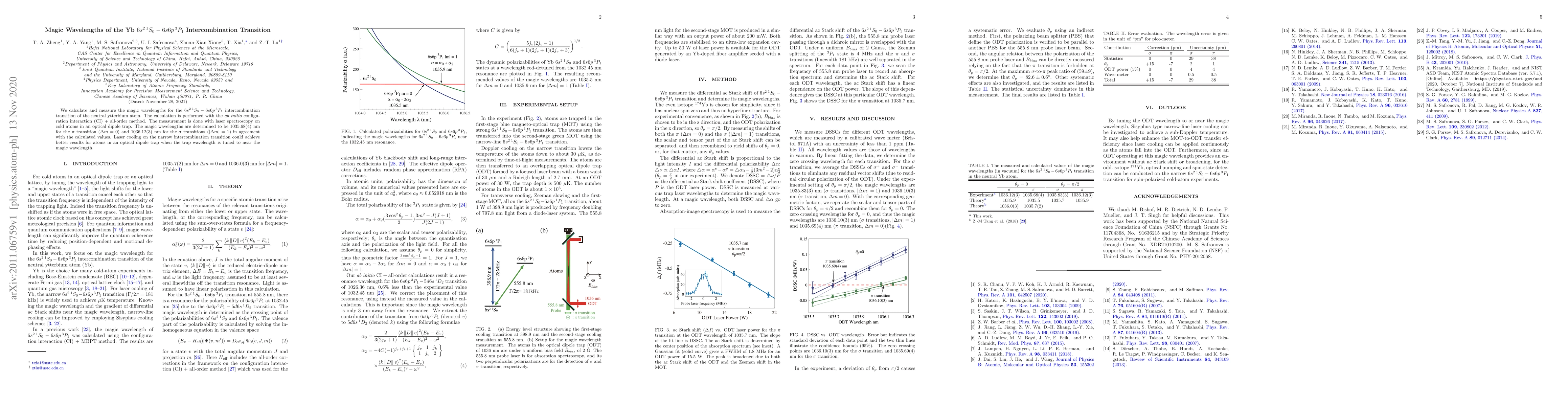 This paper reports the calculation and measurement of magic wavelengths for the Yb $6s^2\,^1S_0-6s6p\,{}^3P_1$ intercombination transition, finding 1035.68(4) nm for the $\pi$ transition and 1036.12(3) nm for the $\sigma$ transitions, with laser spectroscopy on cold atoms. These wavelengths optimize laser cooling in optical dipole traps.