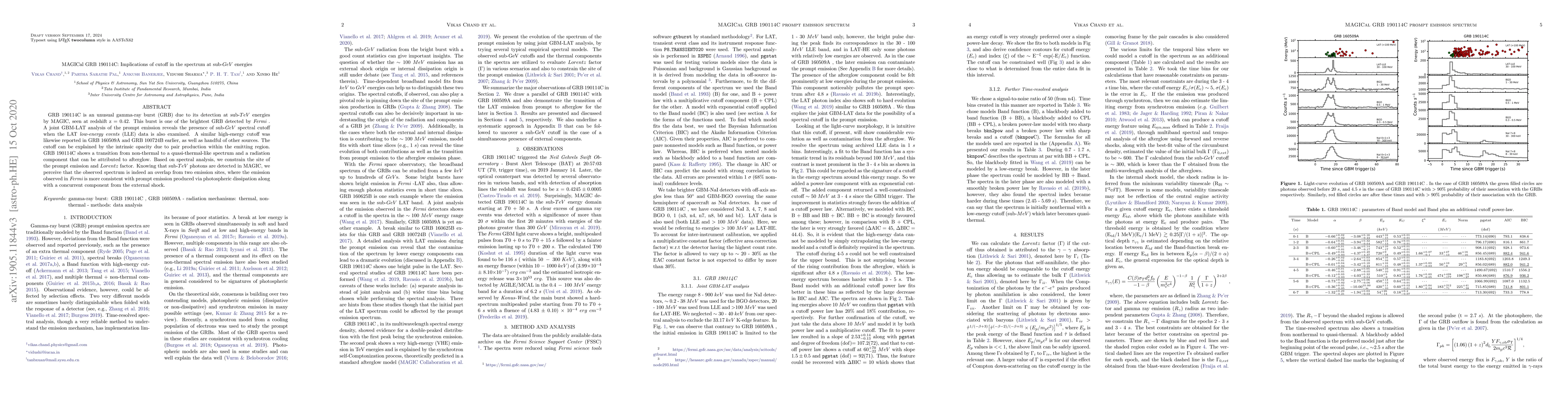 GRB 190114C, detected at sub-TeV energies by MAGIC, exhibits a sub-GeV spectral cutoff, suggesting intrinsic opacity due to pair production. The spectrum transitions from non-thermal to quasi-thermal, indicating two emission sites: one consistent with prompt emission from photospheric dissipation and another from the external shock.
