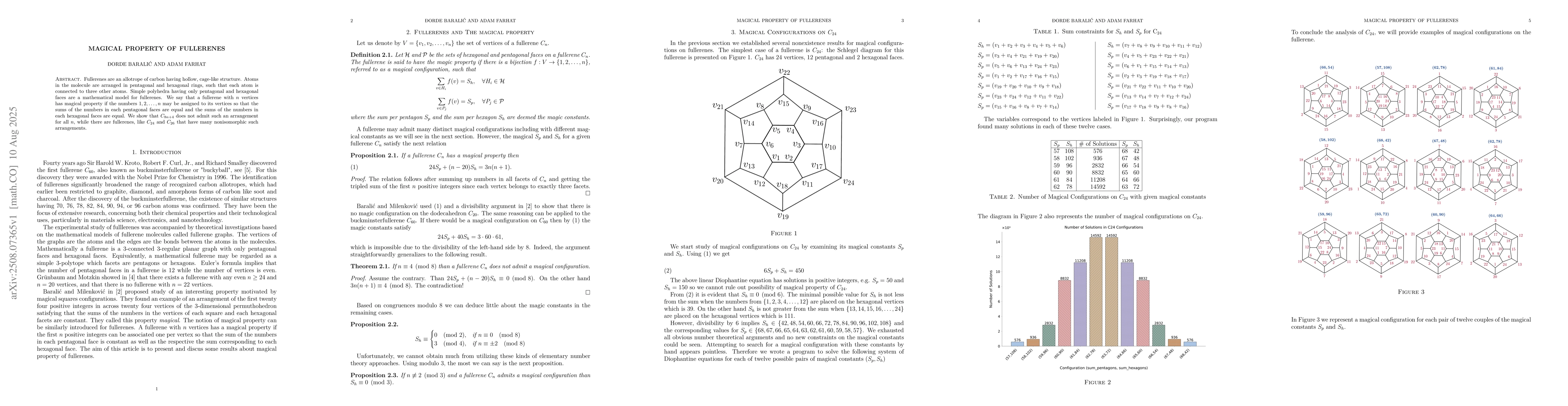 Fullerenes are an allotrope of carbon having hollow, cage-like structure. Atoms in the molecule are arranged in pentagonal and hexagonal rings, such that each atom is connected to three other atoms. Simple polyhedra having only pentagonal and hexagonal faces are a mathematical model for fullerenes. We say that a fullerene with $n$ vertices has magical property if the numbers $1, 2, \dots, n$ may be assigned to its vertices so that the sums of the numbers in each pentagonal faces are equal and the sums of the numbers in each hexagonal faces are equal. We show that $C_{8n+4}$ does not admit such an arrangement for all $n$, while there are fullerenes, like $C_{24}$ and $C_{26}$ that have many nonisomorphic such arrangements.