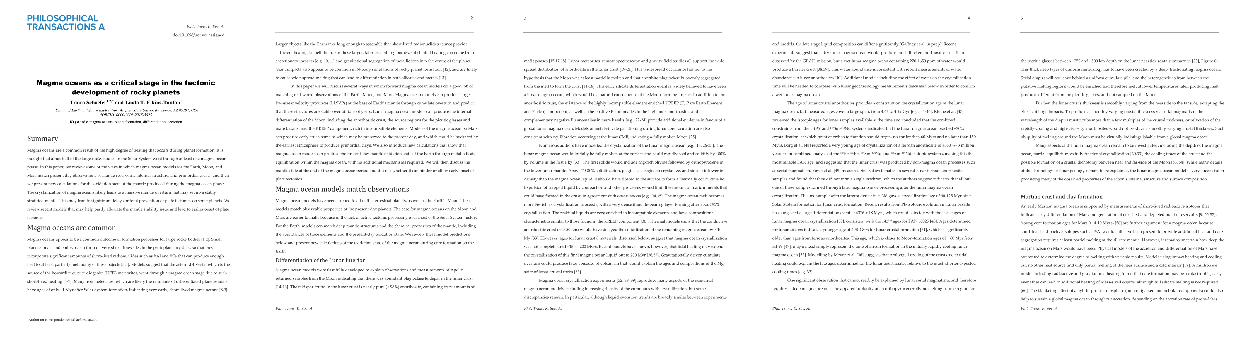 This paper reviews the role of magma oceans in the tectonic development of rocky planets, showing how magma oceans likely cause mantle overturn and potentially delay or prevent plate tectonics. It also presents new calculations on mantle oxidation states and discusses recent models that may facilitate earlier onset of plate tectonics.