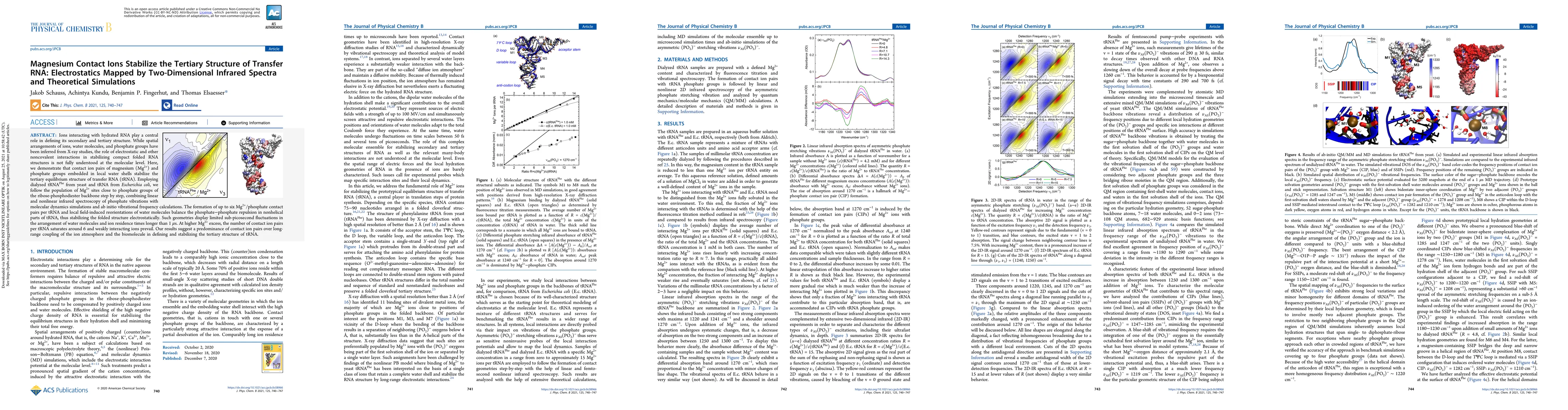 Research shows that magnesium ions play a crucial role in stabilizing the tertiary structure of transfer RNA (tRNA) through electrostatic interactions with phosphate groups, balancing repulsion forces to maintain the folded structure.