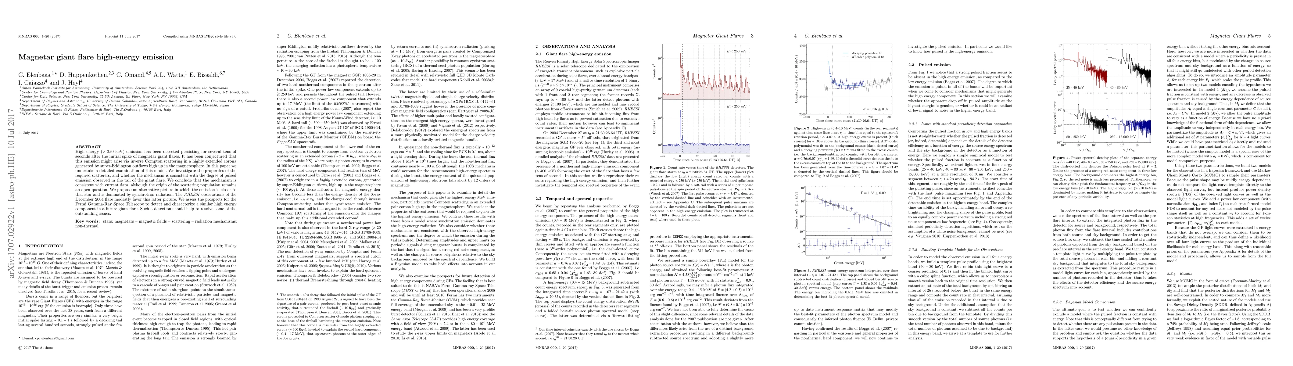 High energy ($> 250$ keV) emission has been detected persisting for several tens of seconds after the initial spike of magnetar giant flares. It has been conjectured that this emission might arise via inverse Compton scattering in a highly extended corona generated by super-Eddington outflows high up in the magnetosphere. In this paper we undertake a detailed examination of this model. We investigate the properties of the required scatterers, and whether the mechanism is consistent with the degree of pulsed emission observed in the tail of the giant flare. We conclude that the mechanism is consistent with current data, although the origin of the scattering population remains an open question. We propose an alternative picture in which the emission is closer to that star and is dominated by synchrotron radiation. The $RHESSI$ observations of the December 2004 flare modestly favor this latter picture. We assess the prospects for the Fermi Gamma-Ray Space Telescope to detect and characterize a similar high energy component in a future giant flare. Such a detection should help to resolve some of the outstanding issues.