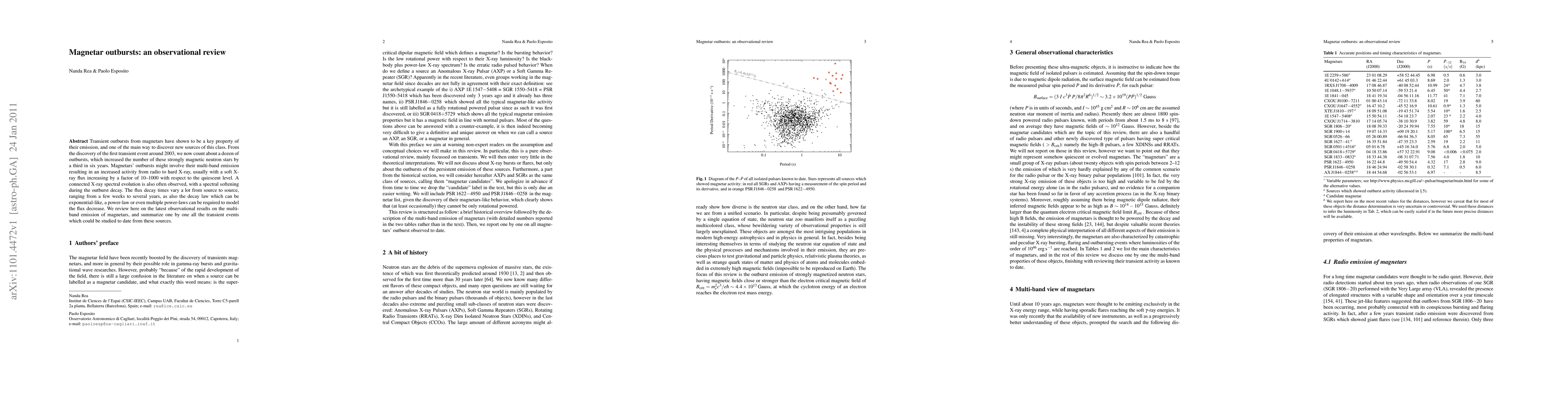 Transient outbursts from magnetars have shown to be a key property of their emission, and one of the main way to discover new sources of this class. From the discovery of the first transient event around 2003, we now count about a dozen of outbursts, which increased the number of these strongly magnetic neutron stars by a third in six years. Magnetar outbursts might involve their multi-band emission resulting in an increased activity from radio to hard X-ray, usually with a soft X-ray flux increasing by a factor of 10-1000 with respect to the quiescent level. A connected X-ray spectral evolution is also often observed, with a spectral softening during the outburst decay. The flux decay times vary a lot from source to source, ranging from a few weeks to several years, as also the decay law which can be exponential-like, a power-law or even multiple power-laws can be required to model the flux decrease. We review here on the latest observational results on the multi-band emission of magnetars, and summarize one by one all the transient events which could be studied to date from these sources.