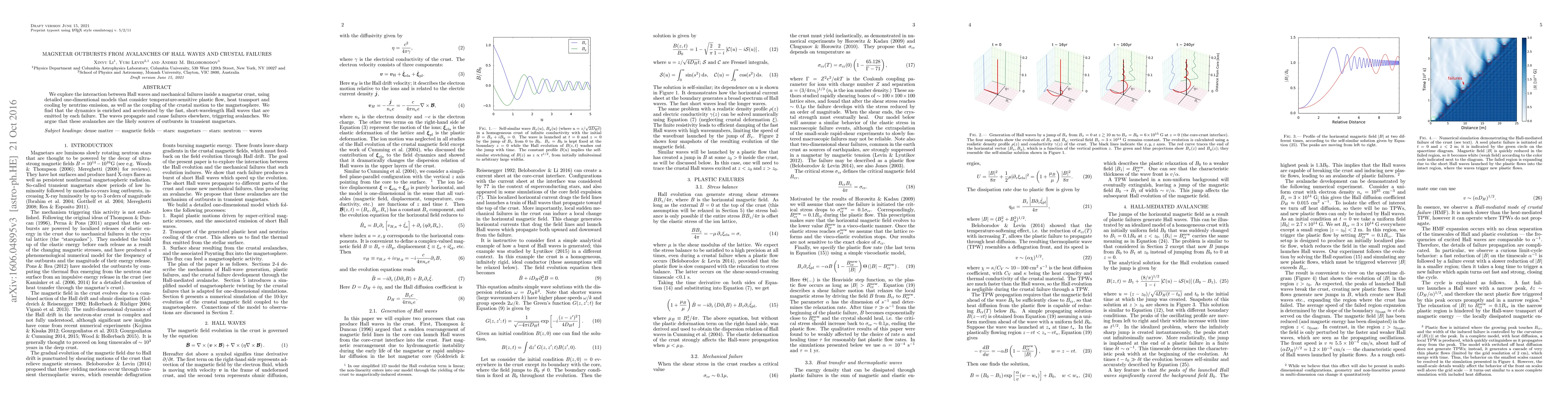 We explore the interaction between Hall waves and mechanical failures inside a magnetar crust, using detailed one-dimentional models that consider temperature-sensitive plastic flow, heat transport and cooling by neutrino emission, as well as the coupling of the crustal motion to the magnetosphere. We find that the dynamics is enriched and accelerated by the fast, short-wavelength Hall waves that are emitted by each failure. The waves propagate and cause failures elsewhere, triggering avalanches. We argue that these avalanches are the likely sources of outbursts in transient magnetars.
